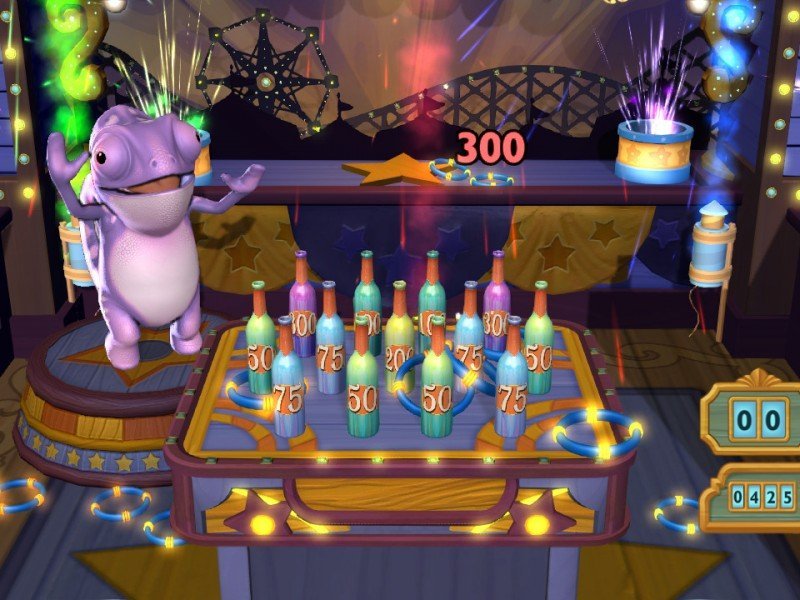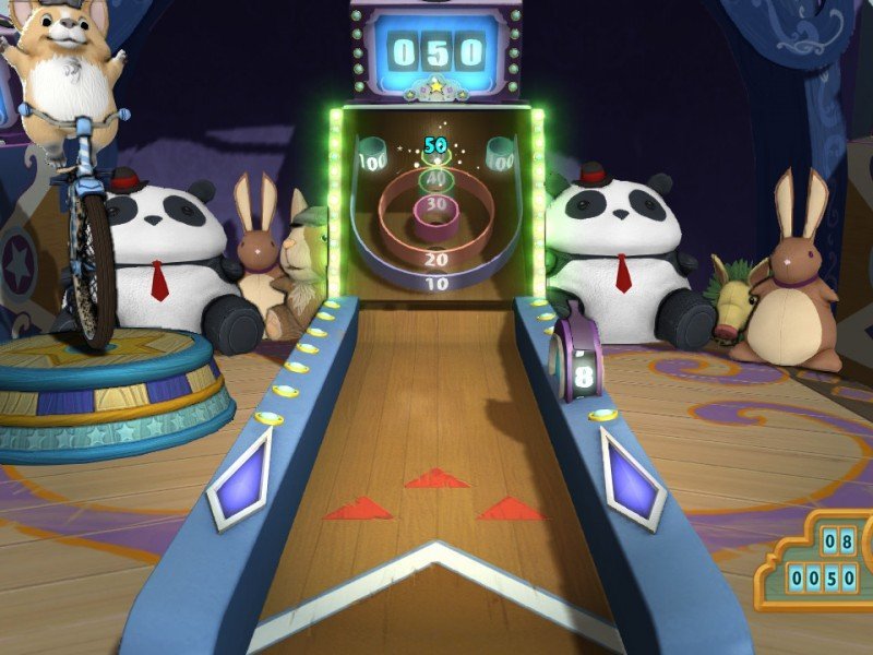 Signé Magic Pixel Games, Carnival Island fait parti de la gamme de jeux exclusivement jouable au PlayStation Move. Disponible pour une trentaine d'euros, le jeu vous permet de vous essayer à une trentaine de mini-jeux issus de la fête foraine. Accueilli sur une île pour le moins étonnante, vous voici donc parti seul (ou jusqu'à quatre) dans des épreuves plus ou moins folles. Heureusement, le jeu exploite pleinement les capacités du PlayStation Move et demande de s'agiter devant la télé pour réaliser les différentes épreuves proposées. Les commandes sont très simples et bien souvent limitées à une ou deux actions, la maniabilité est donc vite maîtrisée. Au fil de la progression, vous débloquerez de nouvelles variations de jeux existants (bowling, basket, lancer d'anneaux, courses de chevaux, etc), ce qui permet de redonner un peu de challenge à l'ensemble. Et qui dit fête foraine, dit cadeaux. Vous pouvez emporter des items virtuels et débloquer plusieurs bonus. Forcément.