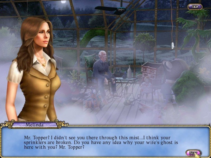 Dans les faits, Ghost Whisperer est hélas moins fringant. Primo, la résolution native de ce titre PC est de 800 x 600. En 2011, cela fait quand même mal aux yeux, surtout que les décors manquent cruellement de détails. Le déroulé du jeu se fait uniquement par image fixe, et aucun doublage n'a été intégré, on a connu de meilleures ambiances. Heureusement le rendu en dessin animé des personnages de la série est assez correct et le scénario plutôt intéressant à suivre. Oh bien sur, la progression se montre très balisée, et lorsque vous ne trouverez pas quoi répondre, il suffira de cliquer sur le système d'indices intégré. Garantissant une durée de vie d'environ quatre heures, Ghost Whisperer est le produit à licence par excellence. Un jeu d'une facilité exaspérante, profilé à fond pour le grand public, et finalement assez creux.