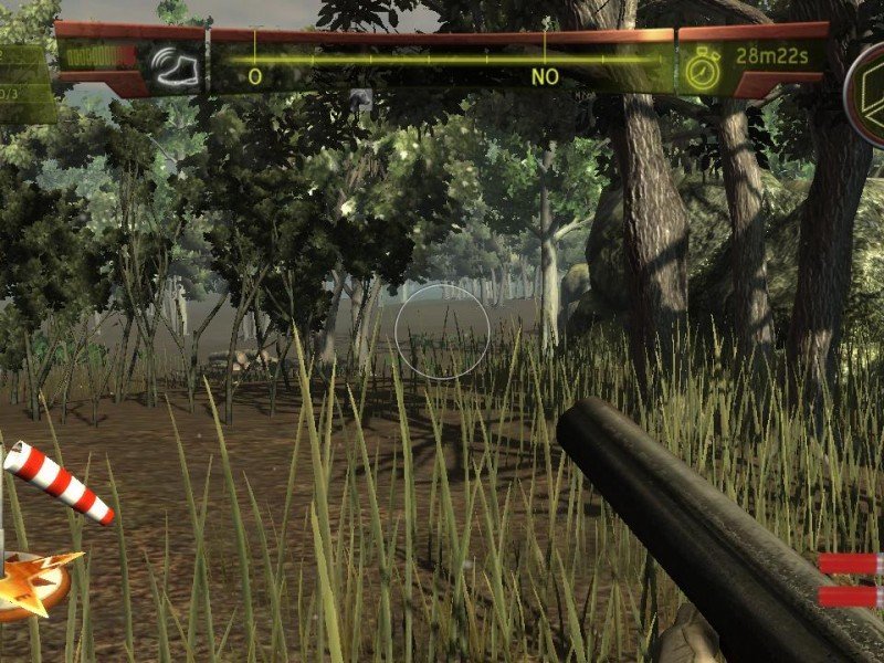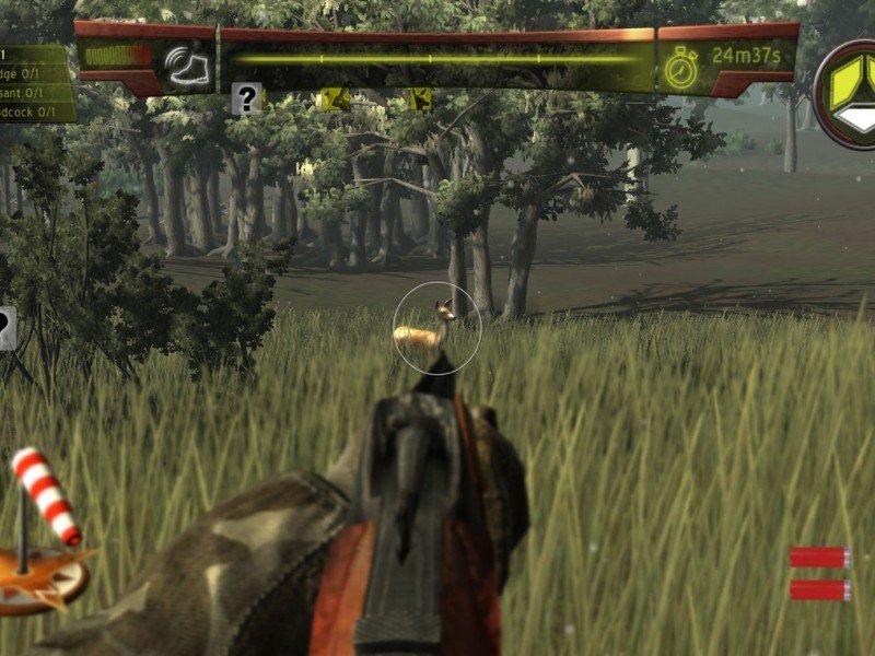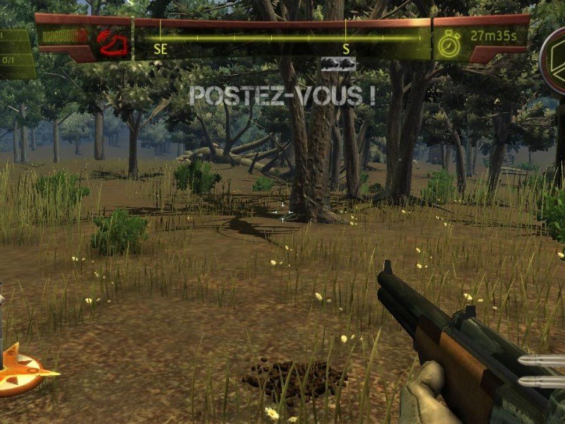 Vendu avec un fusil à canon basculant (en plastique), Hunter's Trophy est donc un nouveau jeu de chasse sur PlayStation 3. Il vous faudra donc traquer du gibier de toutes sortes (colvert, renard, oie, faisan, etc), sur différentes natures de terrain (marais, plaines ou forêts). Mais qu'importe l'arme choisi, l'objectif sera de tirer sur les cibles apparaissant à l'écran, à l'instar de l'antique Duck Hunt. Bien sur, au fil de la progression, la difficulté augmentera, les conditions à remplir seront plus strictes, et la météo ne sera pas toujours en votre faveur. Outre une partie rapide, il est possible de participer à un mode carrière dans lequel vous participerez à une saison de chasse complète (chasse postée ou chasse à l'approche). Un mode Ball-Trap est également proposé (jouable jusqu'à quatre simultanément). Mais dans les faits, Hunter's Trophy apparaît bien difficile. Tout d'abord, le calibrage du PlayStation Move n'est pas vraiment bien géré, et la mire s'avère extrêmement sensible à déplacer. Lors du tir sur cible, le moindre mouvement fait sursauter le curseur, ce qui peut se montrer fort déplaisant. Dans la parties de chasse en elles-mêmes, un Navigation Controller est nécessaire pour se déplacer, le fusil (où l'on insère le PlayStation Move) pointé vers le bord de l'écran permettant de tourner. Un système alambiqué qui rappelle quelque peu Red Steel premier du nom sur Wii. Si vous ne disposez pas du Navigation Controller, il est possible de brancher une manette PS3 sur le fusil, mais la jouabilité apparait encore plus confuse (sachant que le fusil doit se tenir à deux mains). A la manette seule, le titre n'est guère plus dynamique. Le tir sur cible est grandement facilité, mais suivre un animal qui s'enfuit est pour le moins délicat. Notons qu'un chien peut vous accompagner durant la partie, voire plusieurs. Lors de ces phases, il faudra trouver des indices indiquant la présence de gibiers dans les parages. Ensuite, le chien permettra de rabattre la cible vers une zone où le tir sera plus facile.