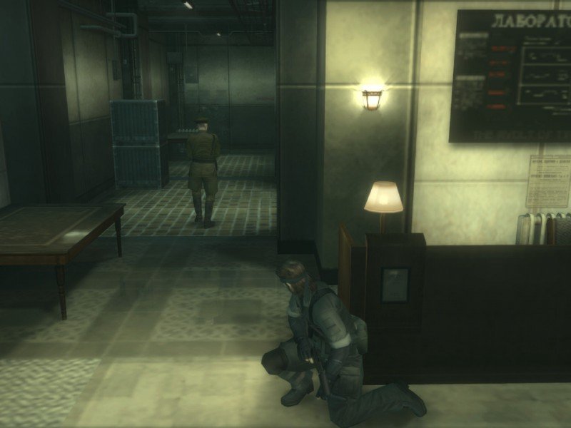 Sorti en 2004, Metal Gear Solid 3 : Snake Eater, ne serait-ce que par son univers, se devait d'apporter des changements. Ici oubliez tous les gadgets derniers cris, il va falloir utiliser des camouflages pour passer inaperçu. En fait il ne faut faire qu'un avec le décor tel un caméléon. Plusieurs modèles sont disponibles dont le modèle français, mais pas tellement discret vu ses couleurs ! En haut à droite de l'écran, vous verrez un pourcentage varié en permanence. En réalité ceci mesure votre taux de visibilité. Il est conseillé de s'en soucier à moins que vous tentiez le mode Très Facile où évidemment, l'IA est très souple.