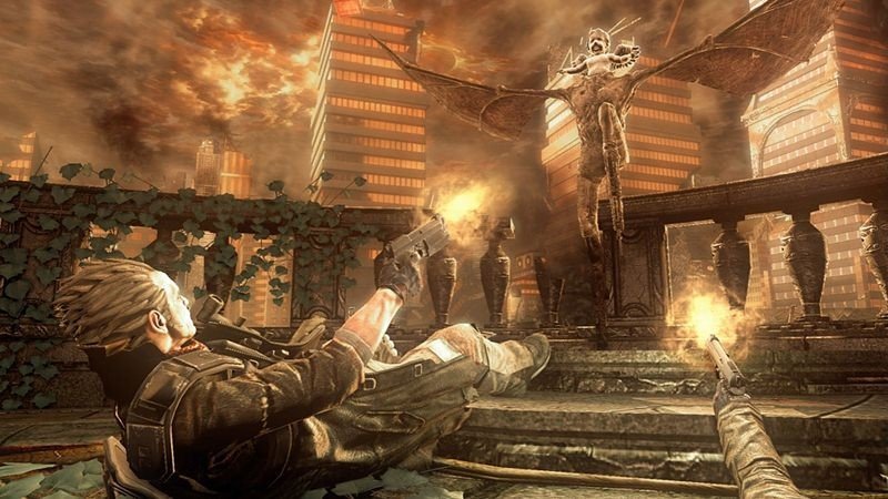 Développé par le studio britannique Rebellion, NeverDead vous propose d'incarner Bryce Boltzmann, un héros immortel mais loin d'être jeune et fringuant. En effet, le personnage a enduré des années de souffrance, suite au meurtre de sa femme par Astaroth, le Roi Démon. Depuis, il erre sans réel but si ce n'est accomplir sa vengeance. Avec l'aide de sa partenaire Arcadia, Bryce va effectuer des missions pour l'Organisation nationale anti-Démon, et devra éliminer les forces démoniaques. Et la tâche s'annonce bien délicate, puisque l'on assiste à une recrudescence des monstres en tout genre, ce qui augure un retour proche d'Astaroth. Plus étonnant, il vous faudra protéger une jeune chanteuse, dont le destin semble lié à celui de Bryce. Manette en main, nous retrouvons un protagoniste rongé par l'alcool, et qui peut se désolidariser de ses membres (!). En dépit de la perte d'un bras, d'une jambe ou même du torse, le personnage peut continuer à se déplacer. Cependant, lorsque seule la tête subsiste à l'écran, le danger d'un game over est proche, car si Bryce ne peut pas se faire tuer, il peut passer l'éternité dans l'estomac d'un démon. Fort heureusement, il est possible de redonner un semblant d'apparence à Bryce, grâce au mécanisme de régénération, ou bien en effectuant des roulades pour rassembler les morceaux manquants. Mais parfois, il sera bien utile de démembrer Bryce. Un bras pourra par exemple servir de dispositif de détonation explosif contre un ennemi, la tête permettra d'explorer discrètement un ennemi, alors que si vous électrocutez Bryce, vous pourrez tirer des balles électrifiées. Outre son corps, Bryce pourra compter sur un arsenal assez varié d'armes à feu, et même d'une épée. Vous gagnerez de l'expérience durant la partie, permettant d'améliorer vos compétences. Le jeu ne se prend pas une minute au sérieux, et c'est assez drôle il faut l'avouer.