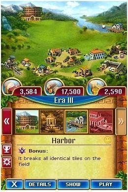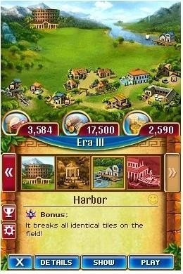 Cradle of Rome 2 vous accueille dans la ville bâtie sur 7 collines. Le concept rappelle fortement les jeux de réflexion que l'on a précédemment rencontré sur de nombreuses plates-formes, c'est à dire d'éliminer des figures présentes à l'écran, en alignant verticalement ou horizontalement trois blocs minimum, de même couleur ou de même motif. Concrètement, il vous faudra pousser un bloc pour arriver au bon motif, ce qui n'est pas toujours facile à faire. En effet, certaines fois, des bloc seront verrouillés et ne seront pas déplaçables. Sans compter que le temps jouera contre vous, un sablier étant présent à droite de l'écran. Petite particularité de la série Cradle cependant, un certain aspect gestion. Lors des parties, vous gagnerez divers éléments permettant d'acquérir de nouvelles constructions pour la fondation de votre ville. Les développeurs ont néanmoins adjoint un item bonus à utiliser avec parcimonie, et qui pourra décanter une situation délicate. On notera également un mode Tournoi et la présence d'un mode blitz assez nerveux.