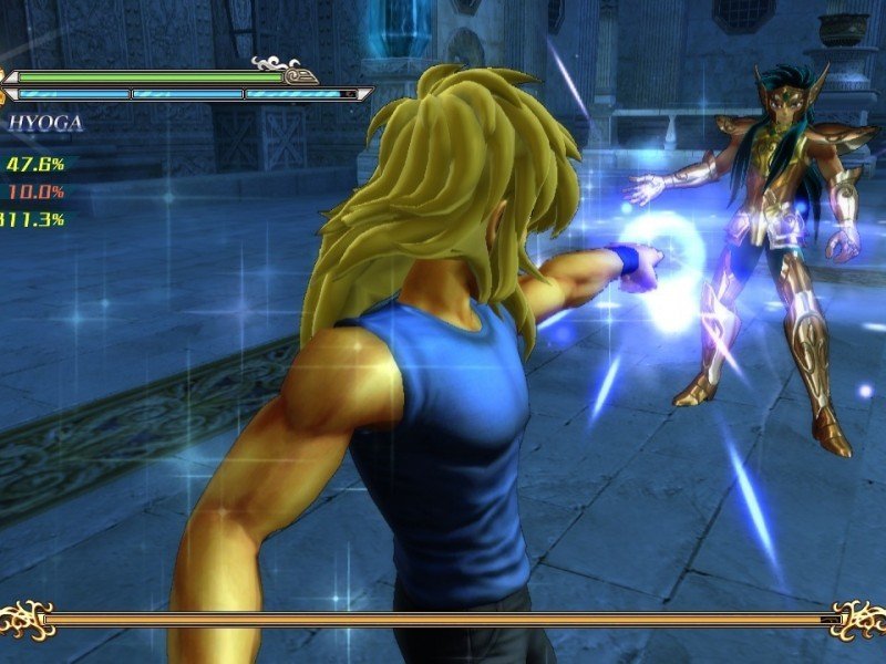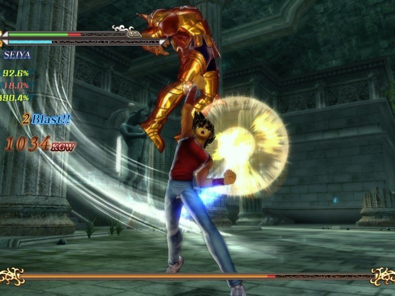 Saint Seiya ne ressemble pas vraiment à un Budokai, hormis peut être la possibilité de contrer les super attaques en pressant le bouton adéquat au bon moment. Ici l'essentiel tient compte du cosmos intérieur, la fameuse cosmo-énergie. C'est en quelque sorte la puissance spirituelle des combattants. Ce n'est peut être pas très clair donc prenons un exemple. Moins votre personnage a de vie, plus il sera possible de lancer des supers attaques. Chaque personnage a de plus plusieurs vies à sa disposition, et de longs combats vous attendent, avec une vingtaine de challengers à la clé. Si la progression rappelle beaucoup l'épisode PS2 Le Sanctuaire (même les scènes cinématiques sont identiques !), les développeurs se sont sentis obligés d'ajouter des phases de combats de masse, façon Dynasty Warriors. En plus du mode Histoire, nous retrouvons un mode coopération à deux joueurs. Il faudra effectuer quelques missions spéciales, le tout dans un mode à écran splitté et à la caméra fixe, ce qui rend les déplacements parfois compliqués. En ligne, il est juste permis d'enregistrer ses scores dans un classement mondial.