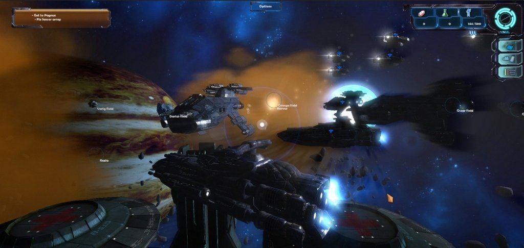 Gemini Wars n'hésitera d'ailleurs pas à vous prodiguer quelques conseils et propose des objectifs sont la résolution ne dure pas des heures. Il est ainsi possible d'effectuer une mission en moins d'une demi heure. Naturellement, le système solaire de départ est pour le moins restreint et vous débuterez la partie sur un astre bien isolé. Cela sera l'occasion de découvrir l'interface, qui s'avère assez correcte dans l'ensemble, même si l'anglais intégral n'aidera sans doute pas à la compréhension des novices. Sur la carte du monde, les déplacements se déroulent justement dans l'espace et seul l'arrière-plan change durant la progression. Le jeu est en tout cas assez proprement réalisé (avec parfois des centaines d'unités à l'écran) et propose un système de progression au tour par tour incluant différents éléments bien utiles (déployer sa flotte, surveiller ses colonies, mener des recherches, etc). Les combats sont quant à eux en temps réel.