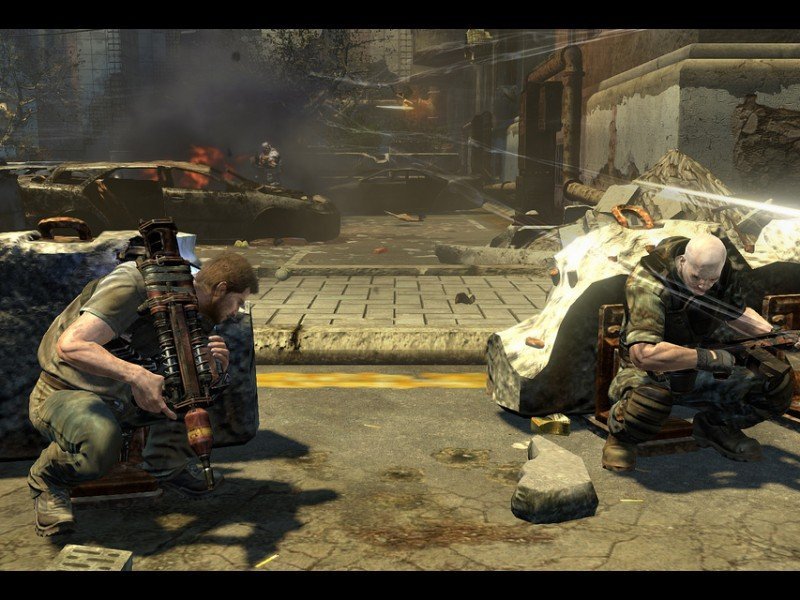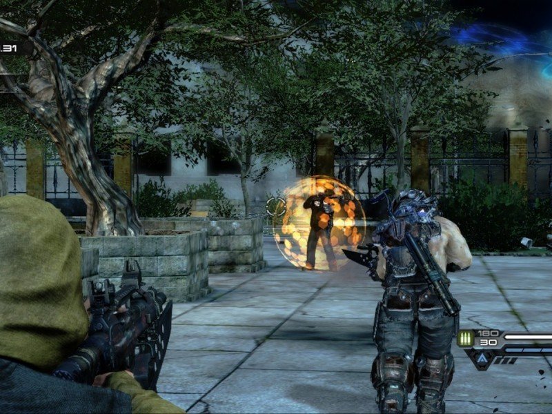 Signé Saber Interactive (TimeShift), Inversion est un jeu de tir à la troisième personne, qui met en scène le personnage de Davis Russel, jeune officier de police, devant faire face à l'invasion d'un ennemi inconnu, les Lutadores, sorte de monstres humanoïdes tout droit sortis des profondeurs de la Terre, capables de faire varier la pesanteur grâce à des technologies avancées pouvant modifier la gravité dans des zones très localisées, utile pour faire léviter les objets ou au contraire bloquer les humains au sol. A l'aide de son équipier Leo Delgado, Davis devra combattre ce terrible ennemi dans une ville ravagée par les explosions et les combats. L'ambiance du jeu est très marquée par ces environnements urbains en friche, composés d'immeubles éventrés par les bombes et de vieux monuments délabrés, où se dérouleront la plupart des affrontements au détriment d'un peu de verdure. Si ces quelques lignes vous rappellent quelque chose, rien d'étonnant Inversion s'inspire très nettement de la série Gears of War, que ce soit dans sa mise en scène, ou bien dans son gameplay. Il faudra donc vous mettre à couvert, tirer dans le tas et vous déplacer rapidement, ce schéma étant à peu près répété durant tout un niveau. Trop simpliste ? Pas forcément.