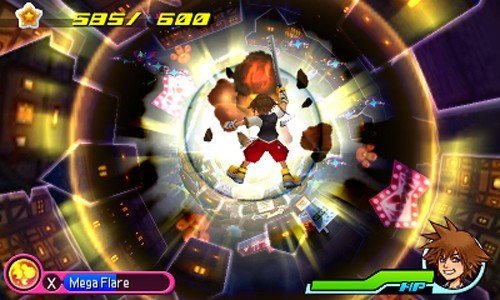 Sur un plan plus technique, Kingdom Hearts pousse les capacités de la Nintendo 3DS à son paroxysme. Les graphismes atteignent une finesse rarement atteintes sur le support, et les environnements se montrent très fins. La 3D stéréoscopique est assez bien gérée dans l'ensemble. Notons qu'il est désormais possible de se servir du décor pour se projeter sur un adversaire, et que les temps de chargements demeurent assez raisonnables. Comptez environ quarante heures pour boucler le jeu intégralement (moitié moins si vous vous contentez de la campagne principale), le tout orchestré par des musiques très jolies (souvent inédits), et les doublages anglais officiels de Disney (les textes sont heureusement en français). Le multijoueur est lui beaucoup plus transparent, avec des combats dans lesquels il faudra utiliser des cartes. Un supplément correct à défaut d'être indispensable.