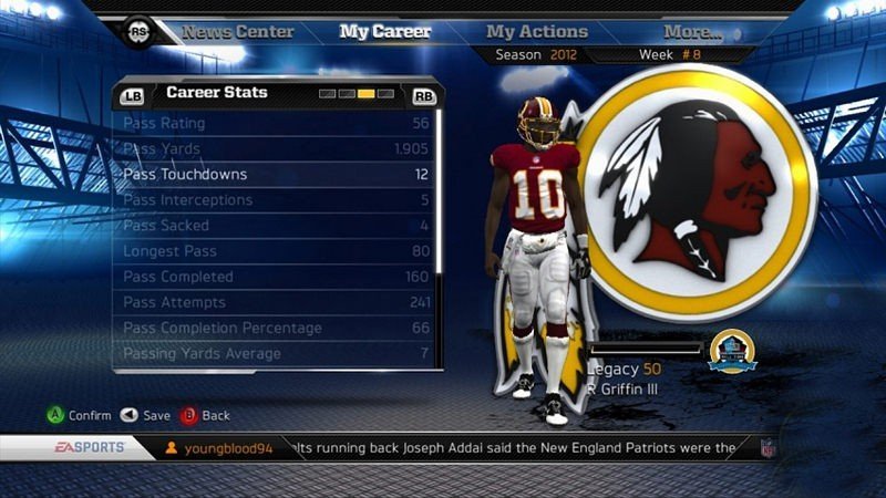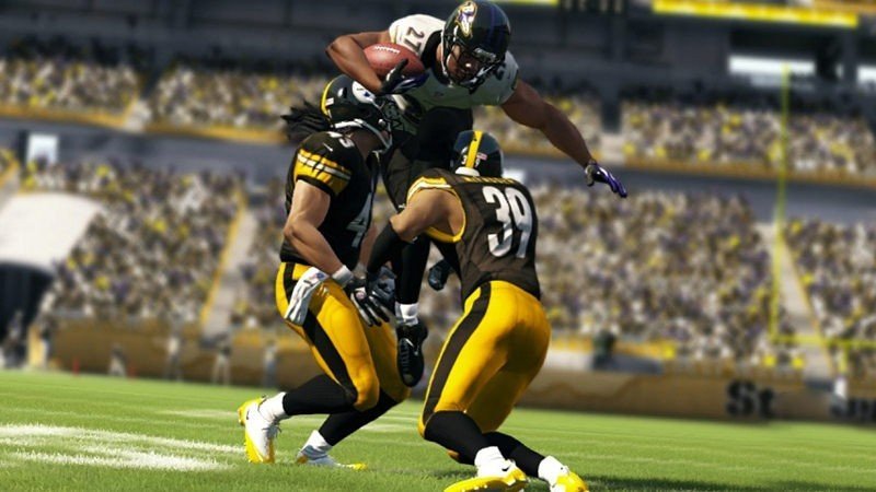 Comme chaque été, EA lance une nouvelle édition de Madden. Cette version 2013 est loin d'être un jeu aisé. Le manuel est ainsi extrêmement détaillé avec moult combinaisons de jeu à retenir. N'oublions pas que le titre est une fois de plus entièrement en anglais (textes et voix), un choix sans doute décidé au vu du manque de succès du football américain en France. Pourtant EA a procédé à quelques ajustements pour ne pas décontenancer les non initiés. On retrouve ainsi cette année un moteur de collisions plus efficace, l'Infinity Engine qui apporte une gestion du corps des joueurs et un plus grand réalisme des situations. Comme à l'accoutumée, vous allez devoir passer une série de tests afin de déterminer votre niveau de jeu. Les résultats influenceront le comportement de l'intelligence artificielle adverse, et pour s'améliorer, il sera toujours possible d'accéder au centre d'entraînement virtuel. Les mouvements offensifs des joueurs restent assez conformes à l'an passé. C'est parfois assez rustre mais la tactique a toujours un rôle important dans un jeu de football américain. Ainsi il est possible de créer un bloc parfait pour créer des brèches dans la défense. Vous incarnez alors le tailback et devez forcer le pas. On notera également la présence du contrôle dit du stick de feinte, qui permet d'esquiver les coups ou encore de provoquer le choc.