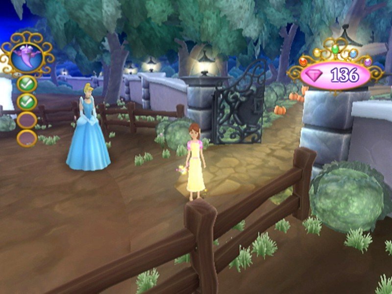 A l'instar de Kingdom Hearts, lorsque vous pénétrez dans un film Disney, l'un des protagonistes principaux du long métrage ne tarde pas à se manifester, et vous pourrez ensuite participer à une campagne scénarisée vous permettant de découvrir des lieux forts connus. Naturellement, le titre s'adressant avant tout aux enfants, vous ne retrouverez pas la dimension action/combat du titre de Square Enix, les tâches étant beaucoup plus bon esprit dans Disney Princesses, même si quelques passages vous obligeront à lancer des sorts sur les lutins. Notez que la campagne peut être effectuée à deux en coopération.