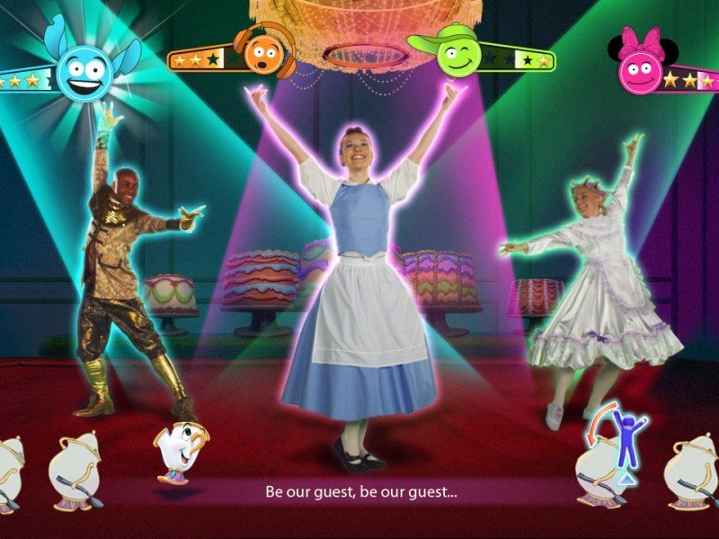 Nécessitant une seule Wiimote par joueur, Just Dance Disney Party est un titre qui permet de se déhancher jusqu’à quatre simultanément sur de nombreuses musiques, 25 exactement. Le titre comporte en réalité des morceaux venants de longs métrages (et parfois en anglais donc), mais aussi de séries télés Disney Channel (Hannah Montana, Shake it Up, Phineas et Ferb, etc). Développé par Land Ho!, ce titre ne s'inscrit pas dans la série numérotée et on ne retrouve pas de Just Sweat ou d'options Duo. Le concept n'a pas évolué depuis Just Dance Kids, mais la reconnaissance des mouvements est cependant un peu plus précise. Il suffit de tenir la télécommande dans la main droite et de reproduire les mouvements que réalise le personnage à l'écran. Just Dance Disney Party présente différents niveaux de difficultés, et il est toujours possible de choisir entre une chanson complète ou seulement la moitié d'un morceau. Le titre s'adressant avant tout à un jeune public, sachez que les chorégraphies sont beaucoup moins élaborées que dans Just Dance 4, et le gameplay sans doute un peu trop permissifs.