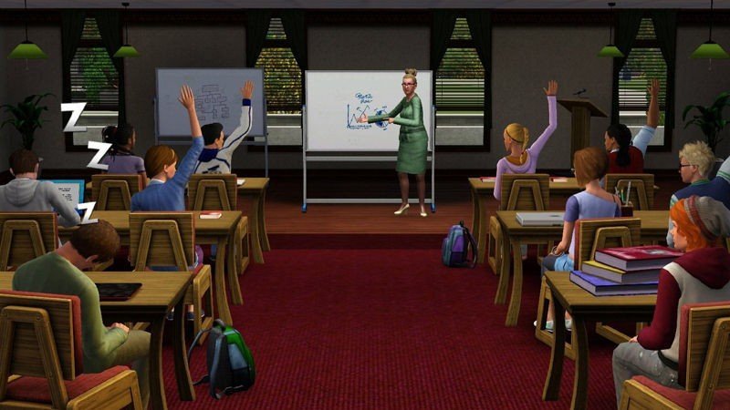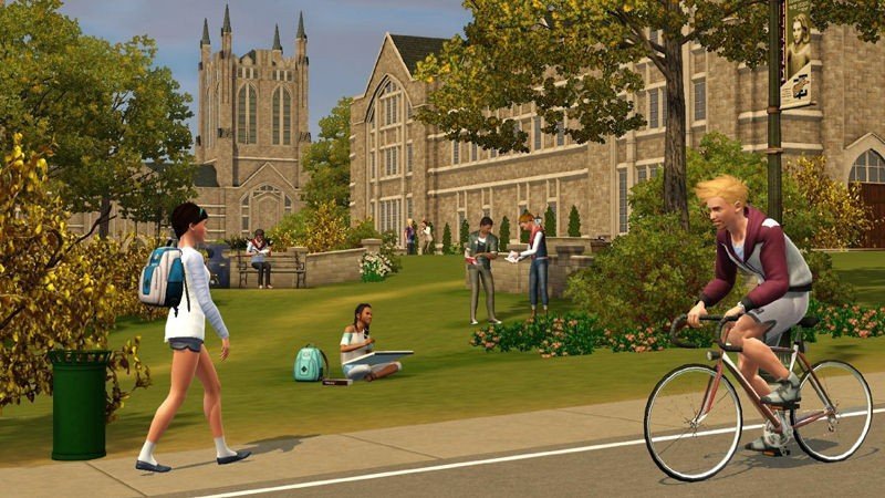 Les Sims 3 est un jeu permet plus de liberté que par le passé, puisque nous évoluons désormais dans une ville totalement ouverte, ce qui change beaucoup de choses il est vrai De plus, contrairement à ses prédécesseurs, Les Sims 3 permet de créer différents Sims et non un seul avatar unique. Naturellement, il ne sera possible que d'en contrôler un à la fois, les autres étant alors dirigés par l'intelligence artificielle. Le degré de personnalisation de votre Sim marque d'ailleurs un pas en avant, et on pourra ainsi modifier ce que l'on désire de la tête aux pieds, en passant par sa morphologie, ses habits (là encore, beaucoup de possibilités de style, tissus etc.), son comportement, etc ... University permet évidemment d'amener les Sims à l'université. Le lieu est séparé de la ville principale, et prend place dans un environnement totalement à part, où les personnages évoluent durant un trimestre au moins. Après avoir rempli un questionnaire, il faudra se rendre vers un ordinateur ou un téléphone portable puis s'inscrire dans une faculté (sciences humaines, arts plastiques, communication, commerce, etc). Pour obtenir le précieux sésame, il faudra disposer d'un certain nombre de crédits, et donc assister à des cours. Un trimestre équivaut ici à une semaine Sim. En cas de succès à vos examens, vous pourrez entrer plus facilement dans la vie active. Sur le campus, le jeu vous demandera de trouver un logement ou d'intégrer une résidence étudiante. Les groupes sociaux sont désormais pris en compte, et réunissent les populaires, les rebelles, et les geeks. Bien entendu, les fêtes estudiantines sont présentes, mais sans alcool cela va de soi, et de nouveaux endroits seront à explorer comme le bowling et SimBurger, ainsi que des activités inédites comme le jus-pong et la création d'œuvres de rue avec des bombes de peinture.