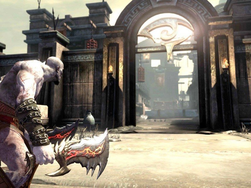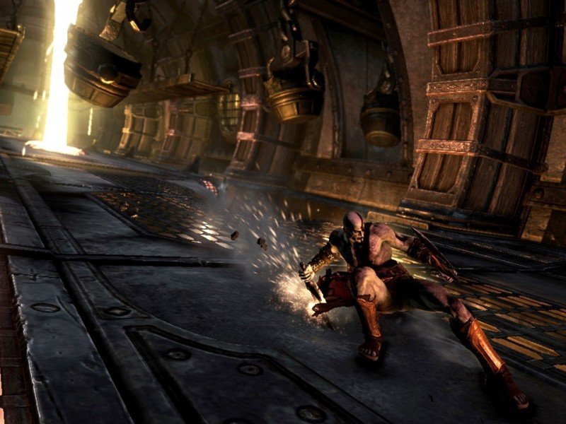 Fréquemment, on découvrira des coffres renfermant des bonus et améliorant la vitalité du personnage, de quoi offrir une bonne marge de progression aux joueurs. Signalons également la présence de QTE (ou actions interactives). Plusieurs affrontements requièrent en effet d'effectuer des combinaisons de touche pour se débarasser plus rapidement de l'ennemi. Là aussi on ne fait pas dans la dentelle et c'est parfois très gore (âmes sensibles s'abstenir). A l'instar d'un Assassin's Creed, Kratos peut se déplacer dans les hauteurs et se suspendre à différentes parois. Tel un acrobate, on avancera prudemment dans des chemins étroits, quand tout à coup une plateforme s'effondrera obligeant à emprunter un chemin risqué. Le jeu est quand même assez tolérant. Si vous tombez, ce ne sera pas un Game Over, mais juste une perte de quelques points de vie. Il y a de plus pas mal de points de passage dans le jeu. En outre, vous rencontrerez beaucoup d'éléments tirés de la mythologie, que ce soit des monstres ou des Dieux. Le level design rappelle beaucoup celui du troisième épisode, c'est un fait, et une trentaine de chapitres vont seront proposés, agrémenté de phases de glisses (Kratos devra descendre des décors fortement penchés).