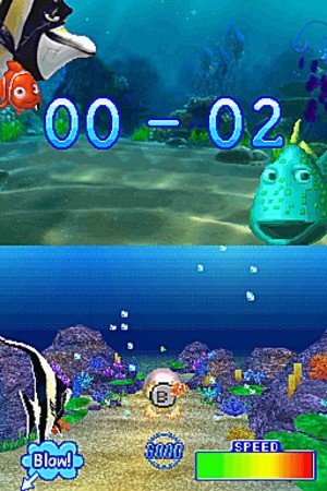 Signé Altron, Le Monde de Nemo : Course vers l'Océan - Édition Spéciale n'est pas à proprement parler une nouveauté, puisque ce titre a précédemment vu le jour en mars 2006 ! Une version DS qui s'inspirait elle-même d'un titre paru sur GameBoy Advance trois ans auparavant. Bref, pour la sortie du film Le Monde de Nemo 3D, Disney a choisi de rééditer un ancien jeu (publié à l'époque par THQ). On retrouve ainsi des séquences extraites du long métrage, et le jeu comporte une trentaine de mini-jeux fort classiques, tirés du scénario du film de Pixar. Il vous faudra ainsi vous échapper de l'aquarium du dentiste et atteindre le récif. Le parcours sera jonché d'obstacles, et vous devrez traverser toute la ville en effectuant des mini-jeux généralement très faciles (le jeu s'adressant avant tout au jeune public). Chaque poisson dispose d'épreuves différentes, faisant un bon usage de l'écran tactile, et chaque étape est ponctuée par un didacticiel illustré sous forme de cinématiques.