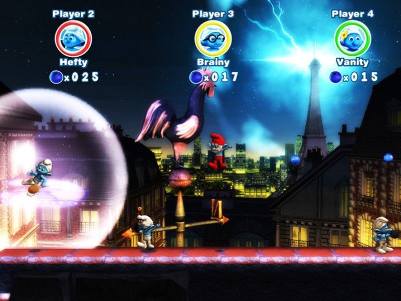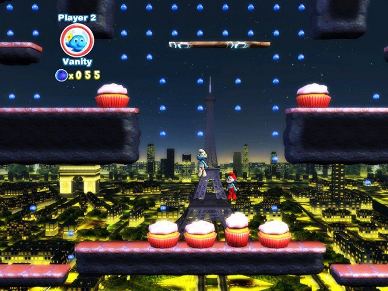 Six mondes vous attendent (le Village des Schtroumpfs, New York, la forêt enchantée, les bois hantées, la Toundra arctique et Paris), soit une trentaine de niveaux, chacun d'entre eux se concluant par un boss (dont bien sur Azraël et Gargamel). Hélas le jeu est loin d'être passionnant car beaucoup trop simpliste. Une touche sert ainsi à sauter, l'autre à utiliser une action spéciale, et c'est tout. L'impossibilité de courir est assez pénalisante et pour ne rien arranger, la durée de vie n'excède pas les quatre heures. On pourra certes collecter vingt Schtroumpfs supplémentaires durant la partie, mais ceux-ci s'avèrent non jouables et font seulement office de décoration au village. Une fois le jeu terminé une première fois, vous pourrez cependant changer de Schtroumpfs à n'importe quel moment dans un niveau.