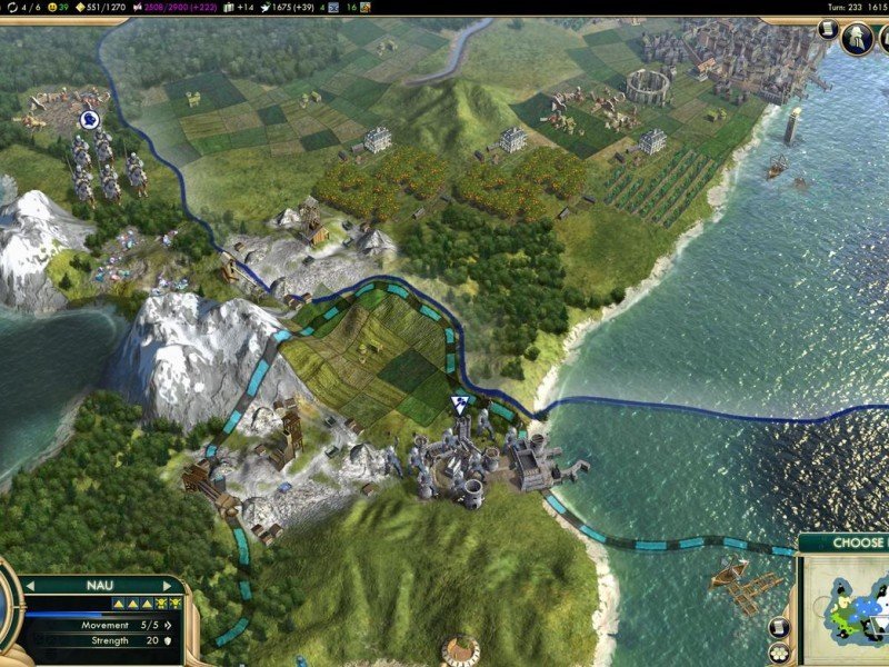 Le concept de Civilization reste le même que dans les précédents épisodes. Vous avez donc pour mission de développer une civilisation à travers les siècles et d’exercer graduellement de plus en plus d’influence sur l’ensemble du monde. Tout comme dans Civilization V, il existe plusieurs façons de « gagner ». La plus évidente est probablement la manière militaire, qui utilise essentiellement la force brute et la bonne vieille panoplie du petit soldat. À côté de cela, vous pouvez également opter pour la filière économique ou encore vous distinguer dans le domaine culturel. Sans oublier la fameuse « course à l’espace », qui offre la victoire finale à la première civilisation qui s’envolera pour l’espace. Le gameplay de Civilization V laisse au joueur la liberté de changer de stratégie à tout moment. Dans certains cas, c’est même la seule façon de battre l’intelligence artificielle. Et comme la technologie évolue constamment au fil des millénaires, il est parfois nécessaire d’explorer d’autres pistes pour mener à bien le jeu. De l’époque des centurions romains à celle des bombes atomiques de destruction massive à grande portée, les armes à feu ne sont en effet pas toujours la solution la plus judicieuse pour dominer. En somme, mieux vaut être flexible et inventif que de tout miser sur un seul et même cheval, sans s’écarter de sa ligne de conduite.