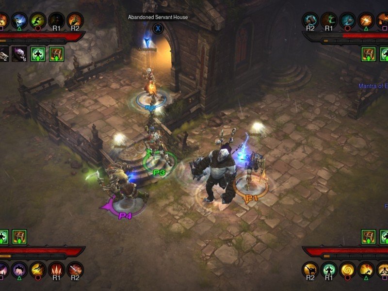 Dans cette adaptation console de Diablo III, on retrouve tout de même quelques changements par rapport à l'original PC. Tout d'abord, chaque support dispose de serveurs dédiés, et on retrouve un mode quatre joueurs accessible en local. En outre, il n'est pas nécessaire d'avoir une connexion Internet permanente pour jouer. La gestion de l'inventaire a été simplifiée, et vous pourrez déplacer jusqu'à soixante objets simultanément (qu'importe leur taille). A contrario, l'interface est un peu moins pratique que sur PC, et prend cette fois la forme d'un menu radial. L'hôtel des ventes a fait ses bagages, et vous ne pourrez donc plus obtenir des objets contre de l'argent virtuel ou réel, et on constate un nouveau mouvement, l'esquive, réalisable avec le stick analogique droit de la manette.