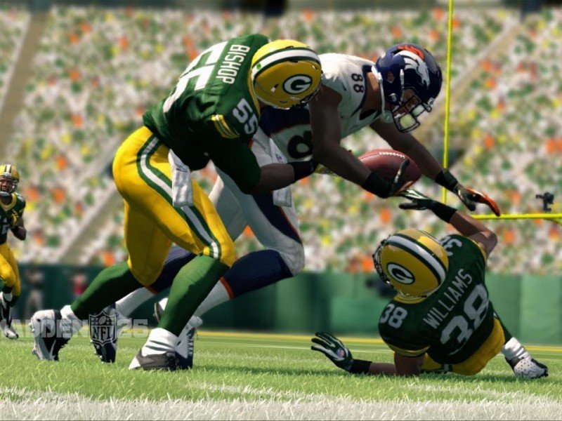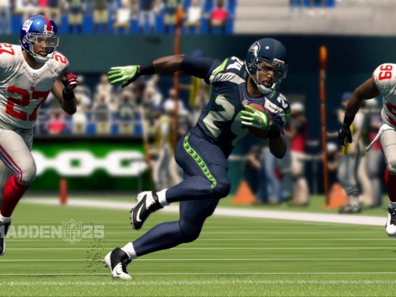 Comme chaque été, EA lance une nouvelle édition de Madden. Cette version 2014 ne s'intitule pourtant pas Madden NFL 14, mais Madden NFL 25, afin de fêter le vingt-cinquième anniversaire de la série. Lancé en 1988 sous le nom de John Madden Football, le titre d'EA ne disposait pas encore de la licence officielle de la compétition, ce fut chose faite seulement en 1993. Nous sommes pourtant rapidement déçu de la célébration de l'anniversaire de Madden, puisqu'il se résume à quelques descriptions des anciens épisodes durant les temps de chargement ! On aurait apprécié découvrir un mode supplémentaire, permettant de rejouer avec le gameplay du premier épisode, comme ce serait le cas dans le futur NHL 14. Bref, si les versions Xbox One et PlayStation 4 tourneront sur le moteur Ignite, cette édition Xbox 360 conserve l'Infinity Engine 2 introduit l'an dernier. Le titre demeure loin d'être un jeu aisé et le manuel est ainsi extrêmement détaillé avec moult combinaisons de jeu à retenir. N'oublions pas que le jeu est une fois de plus entièrement en anglais (textes et voix), un choix sans doute décidé au vu du manque de succès du football américain en France. Pourtant EA a procédé à quelques ajustements pour ne pas décontenancer les non initiés. On retrouve ainsi un moteur de collisions encore plus efficace, et une certaine amélioration des courses via le Run Free, pour un plus grand réalisme des situations. Comme à l'accoutumée, vous allez devoir passer une série de tests afin de déterminer votre niveau de jeu. Les résultats influenceront le comportement de l'intelligence artificielle adverse, et pour s'améliorer, il sera toujours possible d'accéder au centre d'entraînement virtuel. Les mouvements offensifs des joueurs restent assez conformes à l'an passé. C'est parfois assez rustre mais la tactique a toujours un rôle important dans un jeu de football américain. Ainsi il est possible de créer un bloc parfait pour créer des brèches dans la défense. Vous incarnez alors le tailback et devez forcer le pas. On notera également la présence du contrôle dit du stick de feinte, qui permet d'esquiver les coups ou encore de provoquer le choc.