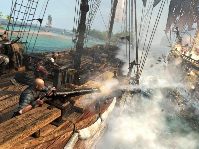 Assassin's Creed IV conserve cependant les bases de ses ainés. On navigue donc assez vite en terrain connu, et la liberté de déplacement est quasi totale. Les environnements sont plutôt larges et il ne devrait pas être compliqué de jouer au jeu du chat et la souris. En mer, le navire (le Jackdaw) et ses déplacements font partie intégrante de l'aventure. Sur ces eaux, vous affronterez des navires ennemis, monterez à l'abordage pour piller les cargaisons adverses, mais aussi et surtout, pourrez vous déplacez où bon vous semble sur la carte des Caraïbes. Notez cependant qu'il est dangereux d'attaquer plusieurs navires simultanément. Vous pourrez également fabriquer des équipements (comme dans Far Cry 3), rechercher des bouteilles sur le rivage renfermant des notes, attaquer des requins, faire chanter les pirates (si si), exécuter des contrats navals, mais aussi visiter les fonds marins (de nombreux trésors y sont enfouis). Bonne nouvelle, il est possible de rejoindre un lieu déjà découvert grâce à la fonctionnalité de déplacement instantanée.