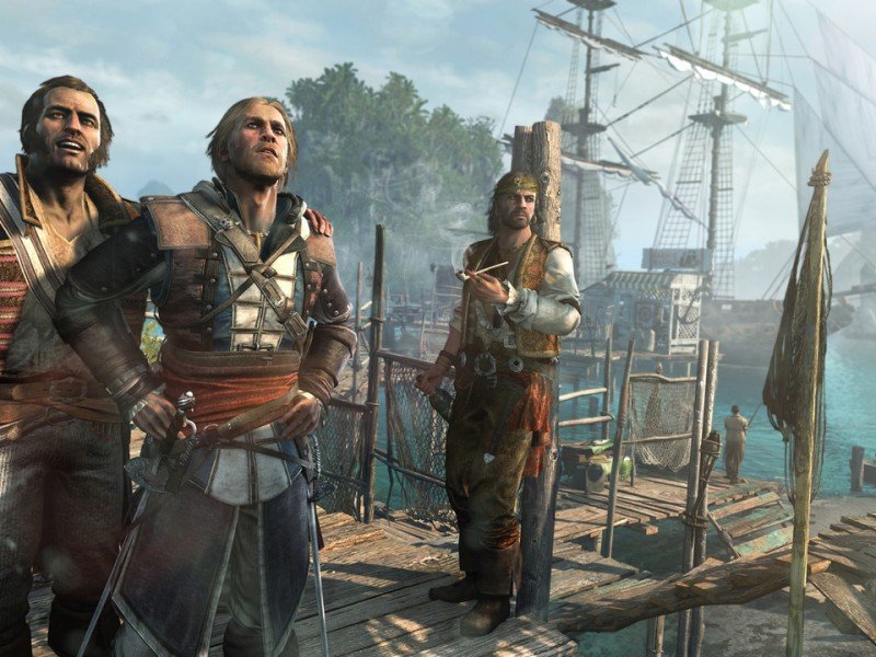 Assassin's Creed IV : Black Flag prend place soixante ans avant son prédécesseur. Développé par Ubisoft Montréal, le titre se focalise en effet sur Edward Kenway, le grand père de Connor (ou Ratohnhaké:ton pour les intimes). Nous sommes en 1715, en pleine mer des Caraïbes. Le capitaine Edward Kenway a quitté l'Angleterre en quête de trésors et d'aventures, et a promis à sa femme de revenir d'ici deux ans. AC IV nous plonge rapidement au cœur de l'action, puisque la partie s'ouvre aux commandes d'un navire en pleine bataille navale. Quelques instants plus tard, Edward s'échoue sur une île paradisiaque, en pleine poursuite d'un assassin dans ce que l'on pourrait qualifier de tutoriel. Le gameplay n'a pas varié depuis les précédents opus, et nous nous retrouverons rapidement en terrain connu. Nous aurions toutefois apprécier découvrir un petit résumé des évènements précédents, car les nouveaux venus risquent d'être un peu perdu dans la grande histoire de la série Assassin's Creed. L'arc consacré à Desmond Miles étant à présent terminé, vous incarnez dans le présent un chercheur d'Abstergo Entertainment dont on ignore tout (l'action prend alors place à la première personne), et dont le seul objectif dans l'Animus est d'obtenir des images intéressantes pour monter un film sur les pirates.