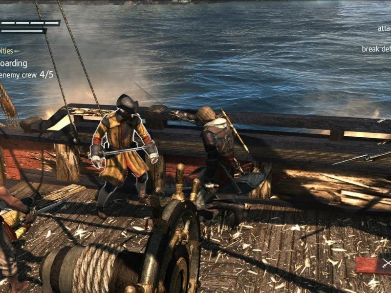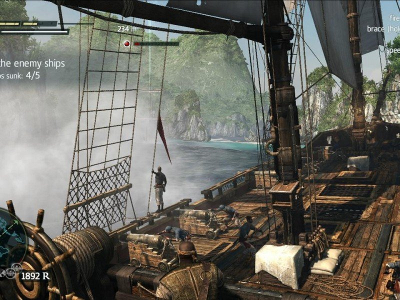 Assassin's Creed IV conserve cependant les bases de ses ainés. On navigue donc assez vite en terrain connu, et la liberté de déplacement est quasi totale. Les environnements sont plutôt larges et il ne devrait pas être compliqué de jouer au jeu du chat et la souris. En mer, le navire (le Jackdaw) et ses déplacements font partie intégrante de l'aventure. Sur ces eaux, vous affronterez des navires ennemis, monterez à l'abordage pour piller les cargaisons adverses, mais aussi et surtout, pourrez vous déplacez où bon vous semble sur la carte des Caraïbes. Notez cependant qu'il est dangereux d'attaquer plusieurs navires simultanément. Vous pourrez également fabriquer des équipements (comme dans Far Cry 3), rechercher des bouteilles sur le rivage renfermant des notes, attaquer des requins, faire chanter les pirates (si si), exécuter des contrats navals, mais aussi visiter les fonds marins (de nombreux trésors y sont enfouis). Bonne nouvelle, il est possible de rejoindre un lieu déjà découvert grâce à la fonctionnalité de déplacement instantanée.
