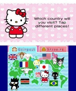 RisingStarGames lance donc une nouvelle édition d'Hello Kitty nommée Le Tour du Monde avec Hello Kitty et ses amis, faisant suite aux épisodes DS Loving Life with Hello Kitty and Friends et Happy Party with Hello Kitty Friends. Bref, il s'agit une fois n'est pas coutume, d'une compilation de mini-jeux. Les déplacements d'un lieu à l'autre se feront via une carte assez basique, et vous pourrez visiter une quinzaine de destinations différentes (États-Unis, France, Royaume-Uni, Kenya, etc) pour participer à différents types d'épreuves (tenir un salon de thé, organiser un défilé de mode, faire du rafting) mais aussi faire du shopping et acheter de nouveaux vêtements pour Hello Kitty (plus de 270 modèles sont disponibles) pour ensuite les montrer à différents évènements. Dans ce monde acidulé et rose bonbon, l'action manque un peu et on aurait préféré découvrir un simili jeu de plateforme qu'un énième party game, surtout que la licence intéresse une large audience féminine, et pas seulement le très jeune public, contrairement à cet épisode. Certes, on y retrouve quasiment tous les grands personnages de la série, et une maniabilité assez réussie, même si la trop grande simplification des tâches peut rapidement vous ennuyer.