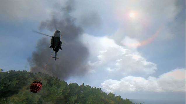 Helicopter Simulator : Search and Rescue vous glisse dans la peau d'un pilote secouriste. Après avoir choisi votre hélicoptère (parmi huit modèles disponibles), vous devrez partir à la chasse des incendies de forêt, résoudre les pannes dans les communications, effectuer des missions de sauvetage en mer, ou bien encore faire face à de nombreux accidents de la circulation. Vous n'arriverez pas sur le lieu d'un drame en vous posant comme une fleur, et le pilotage exige un certain doigté, que vous utilisez la souris ou le clavier. L'hélicoptère est en effet composé de deux parties, la queue accompagnée de son hélice, et le corps principal surmonté du rotor le plus puissant. Manipuler les deux simultanément n'est pas si évident, surtout lorsqu'il faudra prendre un virage serré, et déployer les secours rapidement. Comme ce fut le cas dans la série Search and Rescue il y a des années (qui était signé d'un développeur différent), chaque mission (quarante au total) vous demande de vous rendre sur un lieu précis, d'effectuer votre objectif puis de retourner à la base pour effectuer le bilan.