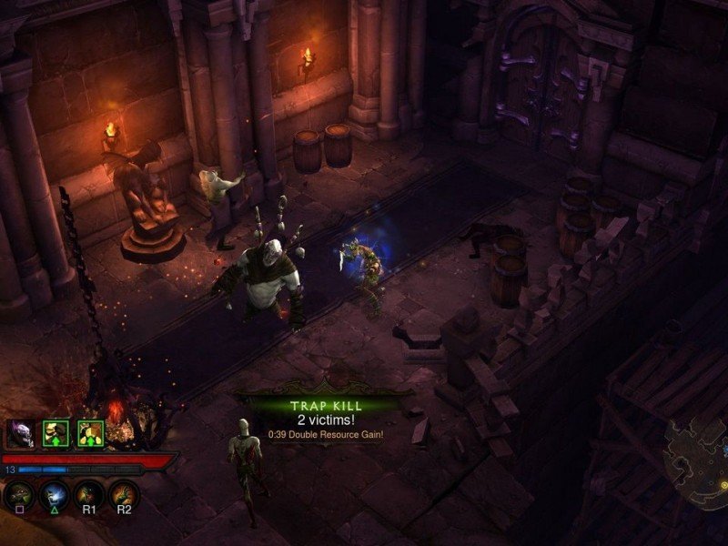 A l'instar de StarCraft II, l'expérience globale est centralisée dans un profil très détaillé. En discutant avec les membres présents sur Battle.net, vous pourrez découvrir où vous en êtes rendu dans la campagne, et il faudra parfois faire des choix dans les évolutions avant d'aborder une future mission. Si les statistiques du personnage évoluent automatiquement, il faut cependant savoir que vous ne disposez que de six cases libres dans les compétences actives. Il est possible de les modifier à tout moment, et la personnalisation offerte s'avère très intéressante. Fréquemment, des cinématiques viendront vous informer de la marche à suivre et illustrer le résultat de vos actions. Notons d'ailleurs que le jeu est intégralement en français. La durée de vie en solo occupera une bonne vingtaine d'heures pour le jeu de base, et environ trois heures pour Reaper of Souls. Dans ce dernier, on retrouve cependant un mode Aventure où vous allez où vous voulez, et affrontez les ennemis de votre choix dans différents environnements (grâce à un système de téléportation). Les quêtes Primes sont générés aléatoirement dans Sanctuaire et permettent d'obtenir de l'expérience, de l'or et aussi améliorer son butin. Enfin, dans les failles Nephalem (accessibles grâce à des fragments de clé) vous entraînent dans des donjons remplis de monstres.