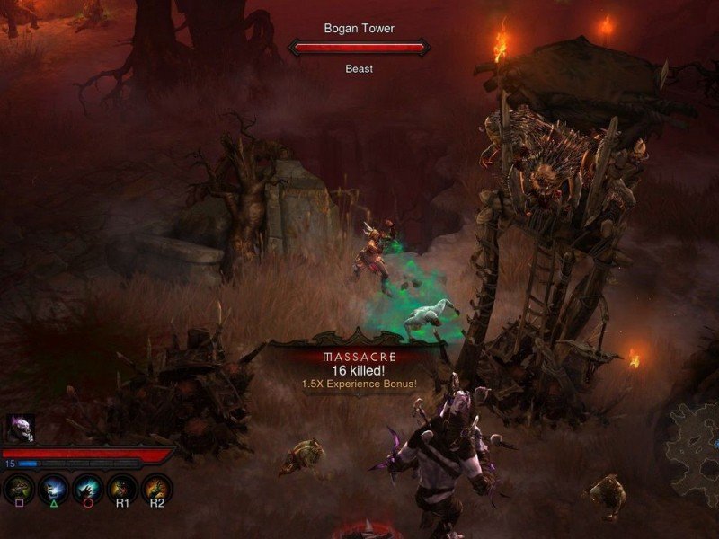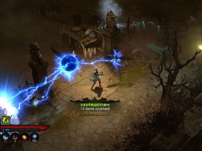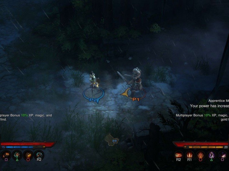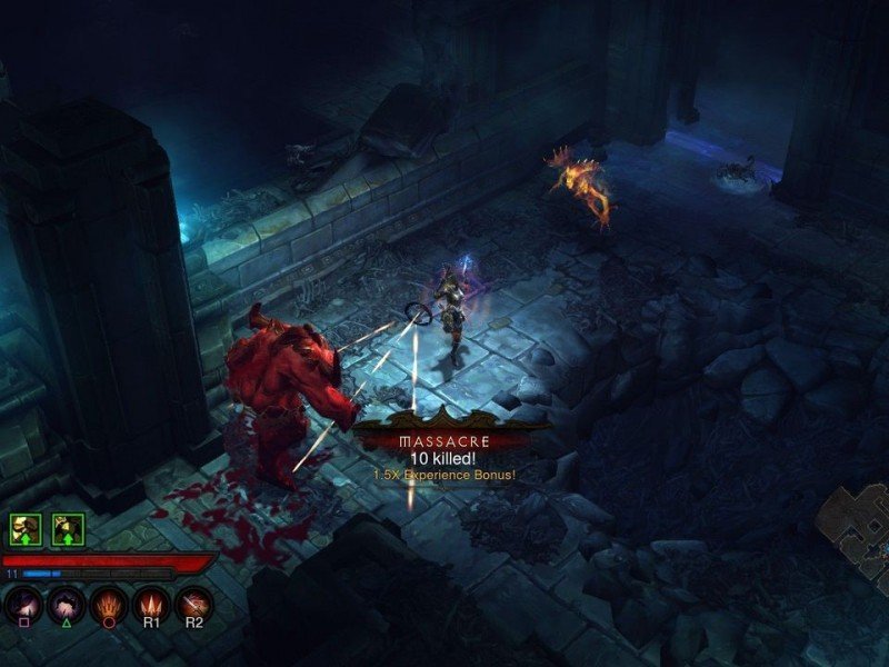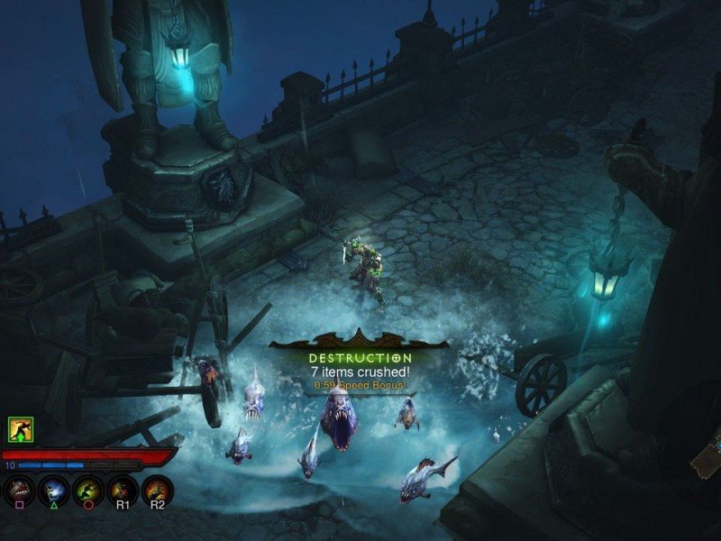 Dans cette adaptation console de Diablo III, on retrouve tout de même quelques changements par rapport à l'original PC. Tout d'abord, chaque support dispose de serveurs dédiés, et on retrouve un mode quatre joueurs accessible en local. En outre, il n'est pas nécessaire d'avoir une connexion Internet permanente pour jouer. La gestion de l'inventaire a été simplifiée, et vous pourrez déplacer jusqu'à soixante objets simultanément (qu'importe leur taille). A contrario, l'interface est un peu moins pratique que sur PC, et prend cette fois la forme d'un menu radial. L'hôtel des ventes a fait ses bagages, et vous ne pourrez donc plus obtenir des objets contre de l'argent virtuel ou réel, et on constate un nouveau mouvement, l'esquive, réalisable avec le stick analogique droit de la manette. PS4 oblige, il est bien sur possible de jouer sur la PS Vita via la fonctionnalité Remote Play, et le rendu est plutôt efficace dans l'ensemble, même si l'absence de deux gâchettes latérales (L2/R2) rend la progression un peu moins confortable.
