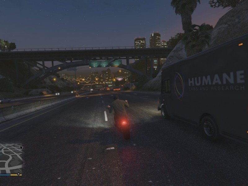 Console nouvelle génération oblige, le portage de GTA V se pare de quelques changements et pas seulement technique (nous y reviendrons plus tard). En effet, il est désormais possible de jouer en vue FPS ! Par pression sur une simple touche, vous vivrez donc l'expérience à la première personne. Il ne s'agit pas d'un simple ajout cosmétique, puisque le gameplay a été adapté en conséquence et intègre de nouvelles améliorations. Cela est particulièrement flagrant lors des phases de tirs car quatre degré d'assistance à la visée sont proposées. Même si l'expérience n'est pas au niveau des meilleurs FPS actuels, la caméra étant parfois un peu empoté, cette évolution est en tout cas sympathique. En outre, tous les véhicules disposent désormais d'un tableau de bord, cockpit ou guidon parfaitement recrées. Techniquement parlant, Grand Theft Auto V porte le genre à des sommets encore jamais atteints. Il suffit pour s'en convaincre de regarder les captures d’écrans. Mais cela ne remplace pas pour autant le jeu en tant que tel, qui reste la seule façon de se rendre véritablement compte de la qualité des graphismes et surtout de leur amélioration depuis l'édition PS3/X360. Désormais en 1080p (et 30 fps), le titre de Rockstar s'avère encore plus réussi sur PS4/XO. Les textures s'avèrent beaucoup plus précises, la modélisation des personnages gagne en réalisme, l'aliasing a été rangé au vestiaire, la gestion des lumières est bien meilleure, la distance d'affichage a été nettement améliorée, et le nombre de piétons s'est accru dans les rues. Le moteur 3D autorise bien des folies, les gens réagissent à tous les événements et à cela s'ajoute un cycle jour-nuit complet, la vie quotidienne s'adaptant au moment de la journée. L'interaction avec l'environnement gagne en réalisme, et l'aire de jeu est de toute beauté, chaque quartier disposant de sa touche très personnelle. Par ailleurs, GTA V est également beaucoup plus fluide que sur la précédente génération de console. La jouabilité n'a pas fondamentalement bougé par rapport aux autres GTA, même en voiture, mais s'est enrichi de quelques fonctions. Les musiques sont disponibles une fois que vous serez dans une voiture, comme à l'accoutumée. Évidemment les radios ont été adaptés et vous retrouvez quelques standards bien connus. L'ambiance sonore est de qualité, tout comme les doublages américains et les différents bruitages du jeu.