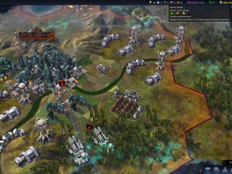 Beyond Earth ne permettant de voir défiler l'histoire de l'humanité à travers les siècles, le système de recherche a été considérablement modifié. L'arbre technologique est organisé autour de trois thèmes, chacun avec des conditions de victoire distinctes. Des quêtes viendront ponctuer la progression, et les choix effectués impacteront forcement le développement de votre monde, trois nouvelles variables étant à surveiller, la Pureté, l'Harmonie et la Suprématie. Au gré de la progression, vous découvrirez également un système de vertus dans lequel il faudra répartir des points accordant des bonus : Puissance, Prospérité, Savoir et Industrie. Bien évidemment, votre nouveau cadre de jeu, comporte des ressources entièrement nouvelles, mais aussi des formes de vie souvent hostiles, ce qui compliquera quelque peu la marche à suivre. A terme vous pourrez développer de nouvelles facultés, lancer une politique de grands travaux, établir des routes commerciales (qui devront être sécurisées pour éviter les bandits). La technologie est quant à elle utile pour construire des satellites qui fourniront des informations stratégies intéressantes, mais aussi repousser les miasmes toxiques, ou encore lancer une importante attaque. Les extraterrestres sont en effet puissants. Enfin, la diplomatie demeure dans la lignée de Civilization V avec ses forces et faiblesses.