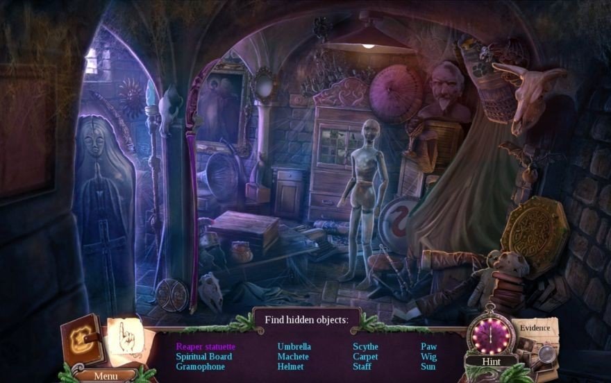 Enigmatis : Les Brumes de Ravenwood est un jeu d’observation simple, et qui marie un scénario mystérieux à des puzzles à énigmes pour une aventure accessible à tous. Signé Artifex Mundi, le jeu se déroule dans un environnement pour le moins obscur. Deux ans après le drame de Maple Creek, vous vous rendez dans la forêt de Ravenwood pour enquêter sur d'étranges disparitions de voyageurs égarés. Il vous faudra aider la petite Becky, traumatisée par un gigantesque monstre ailé qui a enlevé ses parents, et révéler le sombre mystère enfoui dans la forêt depuis des siècles. Au fil de votre enquête, les preuves se croisent et les coïncidences se multiplient : l'affaire de Maple Creek et celle de Ravenwood seraient-elles liées ? Bref, il vous faudra suivre les indices, trouver des preuves et résoudre bon nombre d'énigmes. A l'instar de nombreux titres du genre, vous devrez passer au peigne fin des décors fouillis, mettra à jour des données et trouver des objets en tout genre. Chaque lieu visité pourra, au premier abord, paraître assez commun. Mais le job d’un fin limier est de regarder au-delà des apparences. Une inspection plus approfondie permettra ainsi de découvrir des objets cachés de manière inventive dans les décors. En réalité, le jeu rappelle le livre "Où est Charlie ?", ce petit personnage qui s'amusait à se cacher dans des décors fortement chargé en objets. En début de partie, une liste d’objets à retrouver sera présentée. Fréquemment, cette quête demandera néanmoins une réflexion transversale.