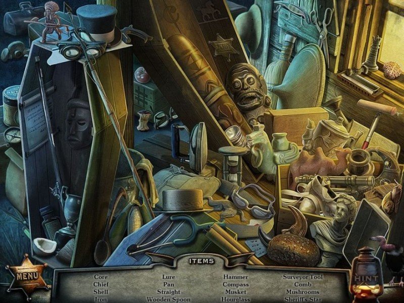 Ghost Encounters : Deadwood est un jeu d’observation simple, et qui marie un scénario mystérieux à des puzzles à énigmes pour une aventure accessible à tous. Signé Anarchy Enterprises, le jeu se déroule dans un environnement pour le moins obscur. A la disparition de Blackjack, un homme qui avait tué 21 personnes avant de mourir, des pilleurs de tombes sans méfiance déclenchèrent une terrible malédiction et condamnèrent la ville entière. Comme atteints de la peste, les habitants tombèrent raides morts, un par un ... Personne ne savait ce que cet esprit démoniaque voulait. Et surtout comment l'arrêter. Bref, il vous faudra suivre les indices, trouver des preuves et résoudre bon nombre d'énigmes. A l'instar de nombreux titres du genre, vous devrez passer au peigne fin des décors fouillis, mettra à jour des données et trouver des objets en tout genre. Chaque lieu visité pourra, au premier abord, paraître assez commun. Mais le job d’un fin limier est de regarder au-delà des apparences. Une inspection plus approfondie permettra ainsi de découvrir des objets cachés de manière inventive dans les décors. En réalité, le jeu rappelle le livre "Où est Charlie ?", ce petit personnage qui s'amusait à se cacher dans des décors fortement chargé en objets. En début de partie, une liste d’objets à retrouver sera présentée. Fréquemment, cette quête demandera néanmoins une réflexion transversale.