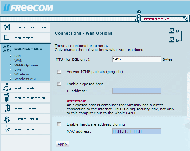 Il permet également de définir une machine qui recevrait toutes les demandes venant de l'extérieur au cas ou vous auriez envie d'installer un serveur non protégé chez vous.
