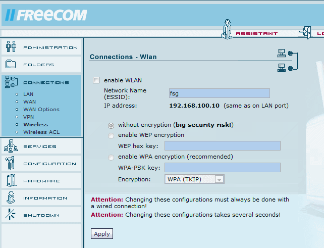 Et finalement pour les connexions il propose également une connexion WiFi comme vous vous en doutiez. Il propose de l'encryption WEP/WPA TKIP/WPA 2 CCMP et le mix des deux.