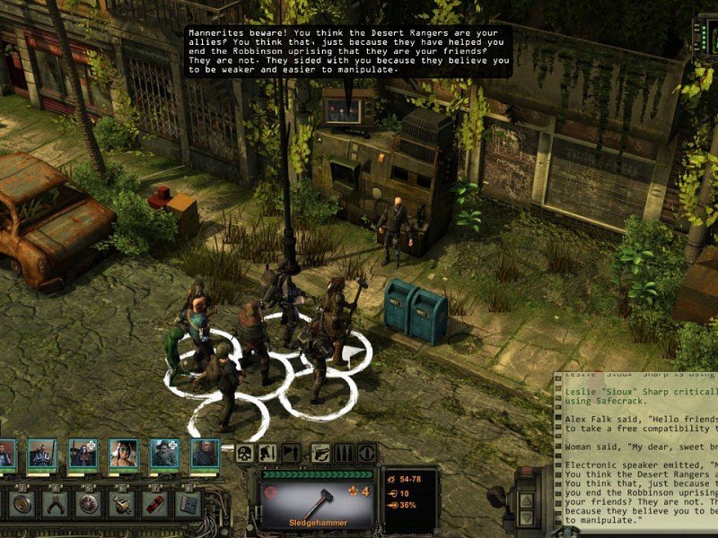 Bien sur Wasteland 2 est également très rétro dans sa conception. Le système de combat au tour par tour s'avère classique, et les rencontres aléatoires très nombreuses. On se croirait dans un RPG japonais des années 1990, avec un découpage de la carte en grille dans laquelle vous pouvez vous déplacer en dépensant une certaine quantité de points d'action. L'intelligence artificielle manque également de caractère et n'hésite pas à se découvrir très facilement. Old School certes, mais la profusion de kits de soin rend l'aventure assez facile, la navigation moins. Vous disposez d'une unique boussole pour vous orienter. Cette version Director's Cut comporte toutefois un système de ciblage pour viser des parties du corps précises, ainsi que la possibilité de donner des caractéristiques délirantes ajoutant des bonus ou des malus aux personnages.