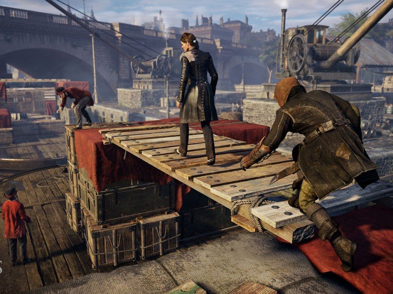 Après le Paris de la révolution française, ce nouvel épisode de la saga Assassin's Creed nous plonge en plein cœur de Londres lors de la révolution industrielle. L'intrigue débute en 1868 avec deux personnages, les jumeaux Evie et Jacob Frye, qui décident de libérer la capitale britannique du joug des templiers. Le gameplay n'a pas vraiment bougé depuis les précédents opus, et nous nous retrouverons rapidement en terrain connu. Nous aurions toutefois apprécier découvrir un petit résumé des évènements précédents, car les nouveaux venus risquent d'être un peu perdu dans la grande histoire de la série Assassin's Creed. Comme à l'accoutumée, vous devrez éviter les mécanismes piégeux qui traînent dans les niveaux, vous montrer discret pour surprendre les gardes, et également résoudre quelques énigmes pour débloquer la progression. Il faut donc utiliser son environnement pour progresser dans l'aventure et en priorité trouver le lieu d'observation de votre prochaine mission (la vision d'aigle a un peu évolué). Assassin's Creed Syndicate conserve cependant les bases de ses ainés. On navigue donc assez vite en terrain connu, et la liberté de déplacement est quasi totale. Les environnements sont plutôt larges et il ne devrait pas être compliqué de jouer au jeu du chat et la souris en plein Londres. On notera également un système des compétences très élaborée, conférant un côté jeu de rôle à la série. Évidemment, il faudra souvent choisir entre telle ou telle évolution, ce qui permet de varier l'expérience de jeu, sachant qu'en plus les deux personnages disposeront d'équipements différents. L'armement s'avère pour le moins exhaustif (épées, fusils, etc), et lui aussi dispose d'un système de niveaux. En revanche, la lame secrète ne peut plus être utilisée en combat ! Pourtant, des assassinats classiques sont présents (à l'image du premier épisode de la série).