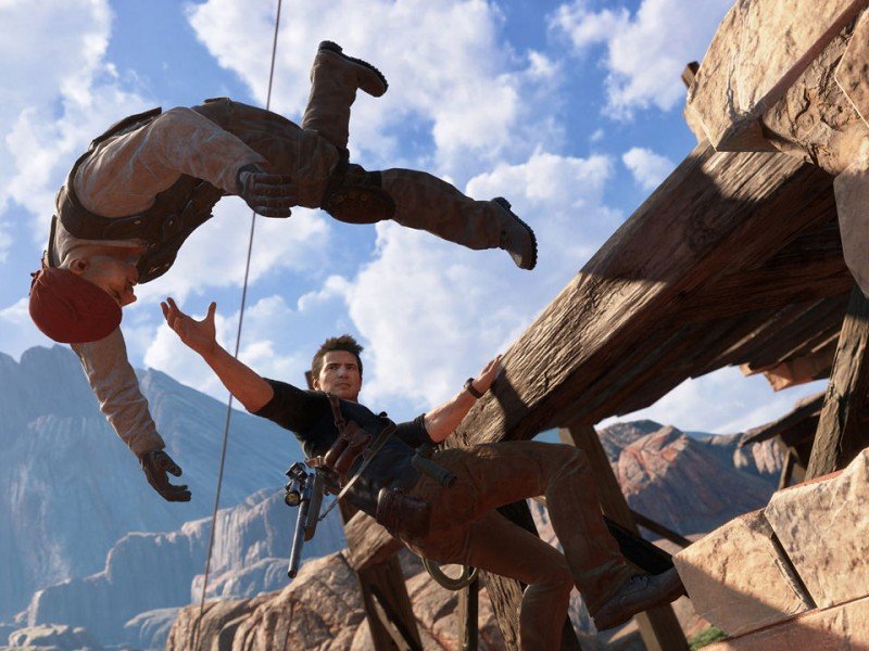 Signé Naughty Dog (Jak & Daxter, The Last of US), Uncharted 4 : A Thief's End met une fois encore en action Nathan Drake, un lointain parent de Sir Francis Drake. Quelques années après les événements d'Uncharted 3 : Drake's Deception (PS3), Nathan coule désormais des jours paisibles avec son épouse Elena Fisher. Une visite inattendue de son frère, Samuel, qu'il croyait mort il y a 15 ans, va le forcer à reprendre du service. En effet, son ancien compagnon de cellule, Alcazar, un célèbre baron de la drogue, a tout organisé pour le faire libérer afin qu'il retrouve le trésor du pirate Henry Avery, dont la fortune est évaluée à 400 millions de dollars. Bien évidemment, ils auront besoin de l'expertise de Sully, toujours prompt à partir à l'aventure. La structure narrative du jeu est d'abord présentée de façon non linéaire, avec des chapitres qui reculent dans le passé et avancent dans le futur de Drake, l'occasion de proposer une aventure aux quatre coins du monde et de mettre en avant la réalisation du jeu tout bonnement magnifique. Les effets de lumières, la modélisation de l'environnement, tout est parfaitement reconstitué pour plonger le joueur dans une campagne haute en couleurs. Le gameplay n'a pas beaucoup évolué mais gagne en souplesse. Un grappin permet désormais de se balancer ou grimper à certains endroits, mais également parfois de tirer des caisses ou d'autres objets pour vous frayer un chemin. Autre nouveauté, vous pourrez emprunter un 4x4 pour vous déplacer plus rapidement dans des zones presque entièrement ouvertes; mais demandant souvent d'effectuer plusieurs détours pour découvrir des indices de ce qui s'est passé avec le Capitaine Avery. Et si la Jeep est embourbé, le grappin sera d'une toute autre utilité !
