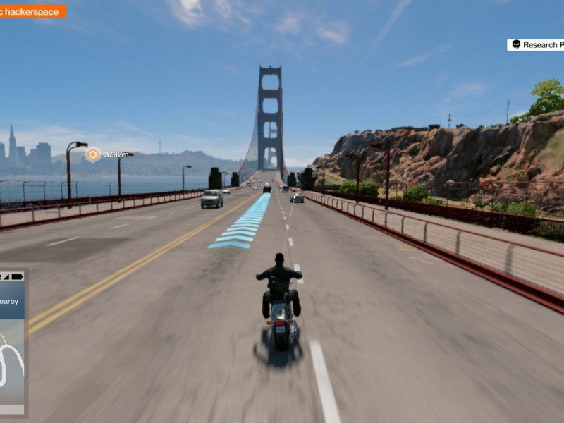 Watch Dogs 2 conserve des bases proches de son ainé, et de facto d'un Assassin's Creed, aussi on navigue assez vite en terrain connu, et la liberté de déplacement est quasi totale. La ville de San Francisco garantit un terrain de jeu plutôt large (bien qu'en deçà d'un GTA V) et il ne devrait pas être compliqué de jouer au jeu du chat et la souris avec les forces de l'ordre. Les phases en voitures (ou à moto) sont très arcade, et on reconnait la touche des développeurs de Driver. Ces passages s'avèrent beaucoup mieux maîtrisés qu'auparavant, notamment la gestion des collisions, et il est enfin possible de tirer tout en étant au volant. Les phases en bateau sont plus discrètes, mais jouissent d'une physique assez appréciable (surtout celles de la mer). Outre la campagne principale, l'aventure comporte de multiples quêtes secondaires facilement retrouvables dans le menu progression. Il y aura du piratage bien sur, de l'infiltration, des Gun-Fights ou encore des courses de rue (voitures, motos et même kart). Pour progresser dans le monde de Watch Dogs 2, il vous faudra acheter des compétences disponibles et classées dans un arbre dans l'application ./Recherche. Afin de débloquer une compétence, vous devrez remplir les conditions nécessaires et posséder suffisamment de points de recherches (grâce à vos followers virtuels).