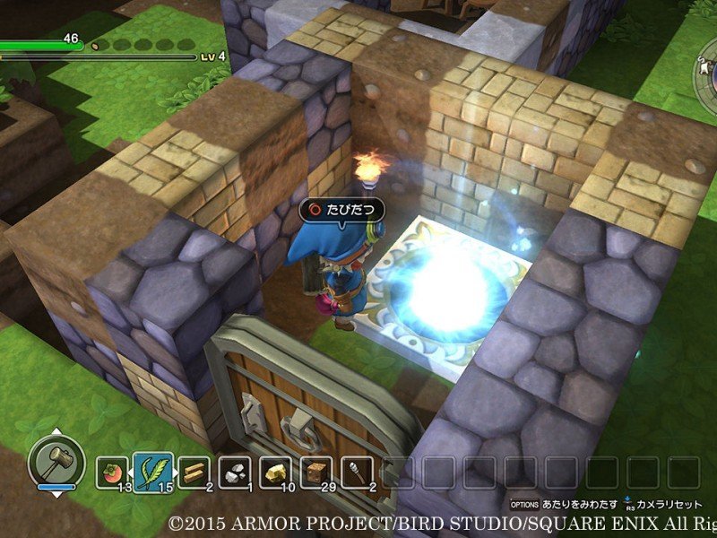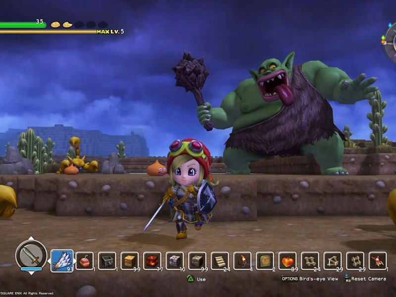 La grande différence entre Dragon Quest Builders et Minecraft, c'est avant tout son côté scénarisé puisque la construction a ici un réel but, redonner au royaume son lustre d'antan. Et bien entendu, les ressources les plus intéressantes seront aussi les plus rares. Le cycle jour/nuit du jeu, très court, changera votre façon de jouer. La nuit, le champ de vision est amoindri et les monstres plus performante. L'occasion de constater que le système de combat a été passablement simplifié depuis la série mère. Seul le bouton Carré a une réelle utilité et permet d'attaquer l'ennemi. En marge de la campagne, vous pourrez également accéder à un mode de construction libre (Terra Incognita), sans attaque de monstres, et avec la présence d'un système de portails pour se déplacer plus rapidement d'un bout à l'autre de la carte. Certes, les éléments sont moins nombreux que dans le jeu de Mohjang, mais la variété des items demeure très intéressante, et il est possible de partager ses créations via Internet.