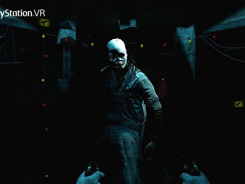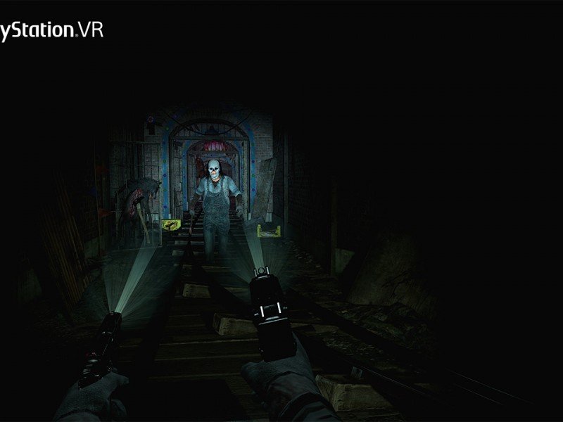Développé par Supermassive Games, Until Dawn : Rush of Blood n'a pas grand chose à voir avec son ainé. Il ne s'agit pas d'un survival-horror cette fois, mais d'un jeu de tir sur rails, à l'instar d'un House of the Dead ou Time Crisis. C'est donc le PlayStation VR sur la tête et équipé de deux Playstation Move que vous partez à l'aventure dans un parc à thèmes diabolique, le "Rush of Blood" peuplé de clowns terrifiants et de monstres maléfiques. Après un court tutoriel dans lequel vous tirerez sur des ballons et autres cibles avec des pistolets à air comprimé, vous embarquerez sur un train fantôme mis sur pied par un savant fou désireux de faire subir des expériences traumatisantes à ses sujets (autrement dit vous). La campagne présente sept niveaux présentant parfois plusieurs chemins, allant de l'abattoir au manoir hanté, en passant par le cirque ou la forêt. Les références empruntées aux films horrifiques sont plutôt bien mis en scène, et l'apport du casque s'avère immersif, notamment en ce qui concerne l'audio.