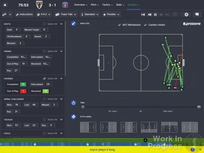 Autre nouveauté, il est possible de manager sur la ligne de touche, comme dans la réalité en somme, et l'intelligence artificielle est davantage crédible. Le partenariat avec ProZone a permis d'ajouter des outils efficaces pour analyser chaque action, et un bulletin d'information vous permet de suivre facilement les événements de votre compétition. On notera également des blessures plus fréquentes, mais aussi plus variées. Il existe à présent une distinction tangible entre l'état du joueur et sa vivacité pendant le match. La gestion de l'entraînement est toujours plus en phase avec le calendrier sportif, vous aurez la possibilité de recruter une équipe technique toujours plus importante et bien utile pour déléguer certaines tâches. Votre adjoint pourra ainsi gérer pas mal d'activités, histoire de vous focaliser sur ce que vous aimez vraiment dans Football Manager. On appréciera également de définir des rôles précis pour chaque poste attribué à un même footballeur, certaines de vos décisions pourront être remises en cause par le conseil d'administration du club, mais si vos dirigeants font preuve d'un trop grand conservatisme, n'hésitez pas à convoquer la presse pour leur dire votre façon de penser.