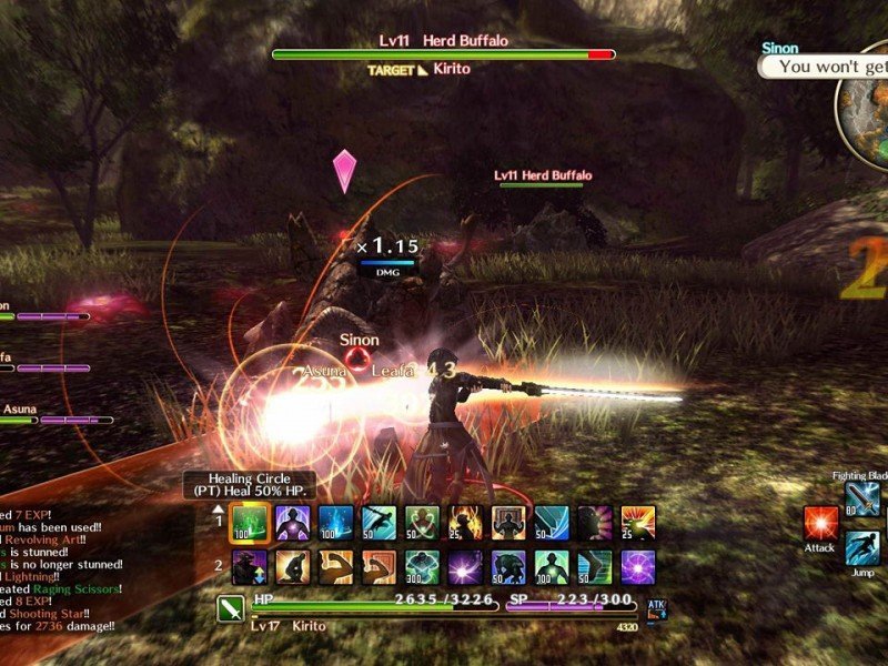 Sur le plan graphique, Sword Art Online : Hollow Realization présent un visuel fidèle à l'animé et un graphisme beaucoup plus fouillé que l'épisode Lost Song. Certes, il s'agit encore d'un portage d'un jeu PS Vita sur PS4, mais cette fois, le travail de mise à jour s'avère indéniable. La ville de départ comporte beaucoup de personnages, l'environnement se montre coloré et le cycle jour/nuit est également très bien géré, de même que les conditions météo. Les mouvements sont également moins rigides que dans l'épisode Lost Song, les combats étant d'un grand dynamisme. La touche carré permet d'attaquer, le triangle et le rond servent à lancer des techniques spéciales, tandis que la croix est le bouton de saut. En pressant sur le pavé tactile, vous pourrez ouvrir une interface permettant d'assigner des objets et des techniques à Kirito. L'équipe est aussi en mesure de réussir des attaques de groupes, forcément plus impressionnantes, mais qui exposent davantage vos compagnons. Bien sur, la ville permettra de récupérer des nouveaux items ou de passer à la forge pour améliorer son équipement existant.