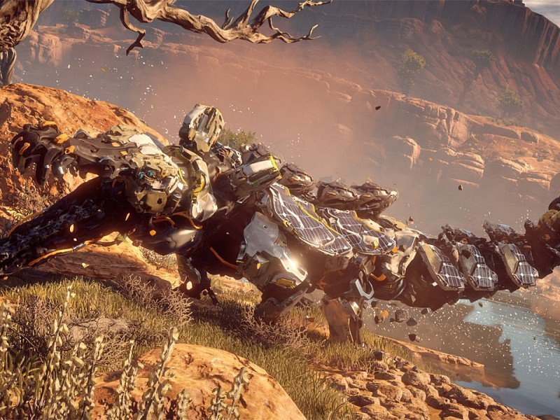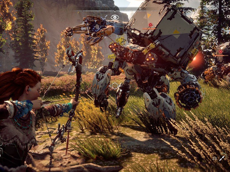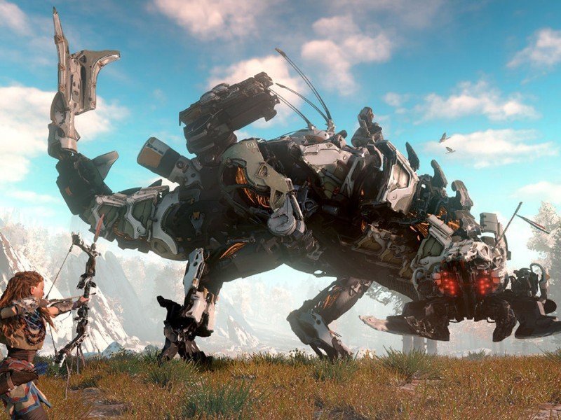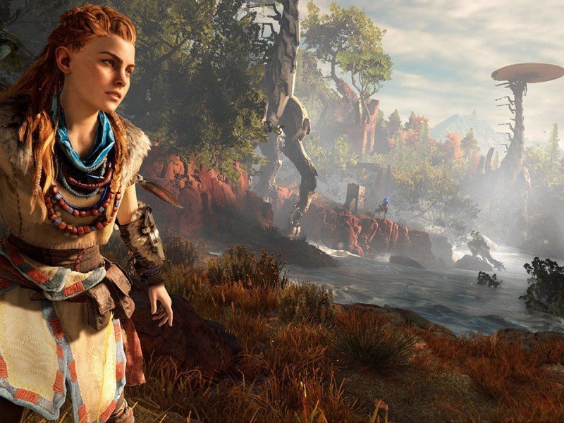 La réalisation technique est sublime et bénéficie d'une direction artistique à couper le souffle, avec des écosystèmes multiples et un cycle jour / nuit parfaitement géré. La végétation est splendide et le travail de conception des créatures est remarquable. A noter une optimisation très aboutie sur PS4 Pro, avec une résolution vidéo qui monte à 4K. Il y a cependant quelques retards d'affichages de certaines textures et une synchronisation labiale pas toujours efficiente. La jouabilité est également très intéressante, offrant des mécaniques de combat et de chasse extrêmement engageantes. Afin de battre les monstres qui sillonnent les plaines, il faudra observer ces créatures pour connaître leur point faible. Cela s'accomplit avec un gadget qu'Aloy porte à l'oreille et qui lui permet d’avoir accès à la réalité augmentée. L'interface précise les points spécifiques sur la créature qui lui feront plus de dégâts. Vous pourrez aussi approcher les créatures de manière furtive, les pister pour connaître leurs habitudes, voire même les pirater (soit pour qu'elles attaquent à votre place, soit pour les utiliser comme monture). L'intelligence artificielle "mécanique" ne manque pas de répondant, celle des ennemis humains est beaucoup moins crédible hélas car un script limite la distance de leurs réactions. En vous éloignant de la cible, ils vous auront déjà oublié.
