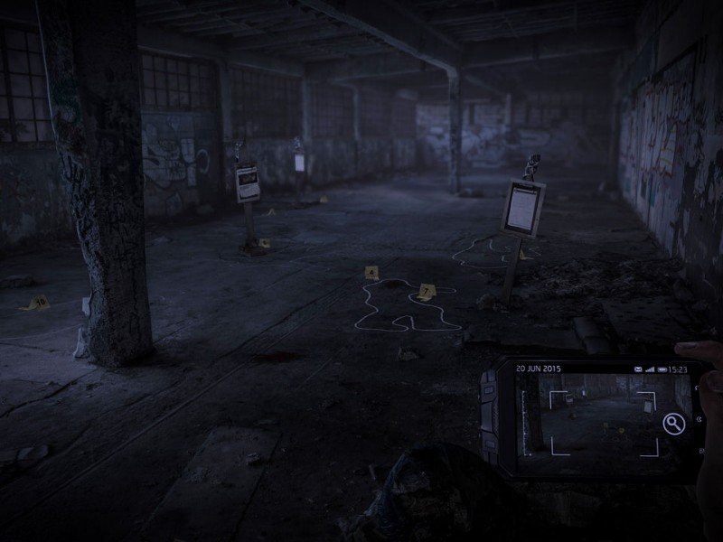 Si vous craignez d'avoir oublié un élément, un lieu très singulier permet de repérer les éléments manquants et propose de revivre chaque chapitre. Il faut d'ailleurs noter que nous évoluons essentiellement dans un univers virtuel, certes à l'aspect réaliste, mais truffé de bugs. Il n'est pas rare qu'un pan du décor s'effondre ou que la notion de temps et d'espace soit complètement incohérente. Difficile toutefois d'être perdu durant l'aventure, sachant que des lumières vertes s'allument sur votre téléphone lorsque vous serez proche d'un indice. Et quand la Dual Shock 4 se met à vibrer c'est que vous serez dessus. Quelques séquences d'action ont également été intégrées, Cole disposant de plusieurs armes à feu, notamment un CornerShot, capable de tirer à 90°sans être à vu. Il faut toutefois noter que l'intelligence artificielle s'avère passive au possible et que les cadavres s'évaporent presque instantanément.
