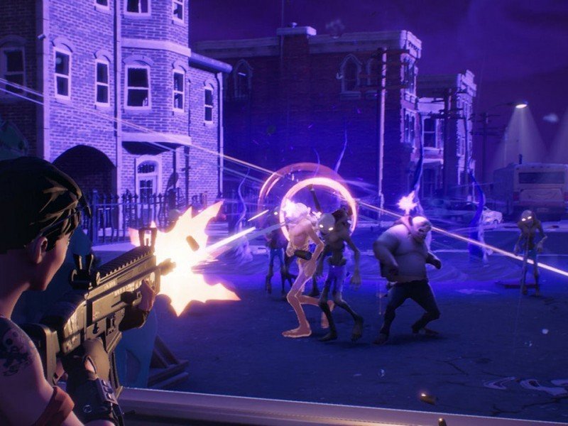 La tempête a frappé sans prévenir. 98% de la population mondiale a péri ... Puis les monstres sont arrivés. Votre objectif sera de mener les derniers héros de notre monde au combat et de lutter une fois encore contre une invasion zombie. La relative originalité de Fortnite est qu'il s'agit d'un shooter agrémenté d'action building. Chaque environnement est construit de la même façon, il faut protéger un objet et construire autour une forteresse afin d'empêcher sa destruction synonyme de fin de partie anticipée. Pour ce faire, il ne faudra pas hésiter à renforcer les murs ou les sols avec divers pièges, comme ça peut l'être dans un titre de tower defense par exemple. Vous pourrez attirer les monstres dans des pièges meurtriers, avec des pointes en métal, des flèches empoisonnées et des tourelles de mitrailleuse. Les ressources collectées sur le terrain permettront de construire des armes insolites telles que des fusils de sniper artisanaux, des pioches hydrauliques ou des dalles à ressort pour projeter les monstres en l'air. En progressant dans l'arbre des talents, vous pouvez déverrouiller des schémas permettant de fabriquer des armes toujours plus folles.