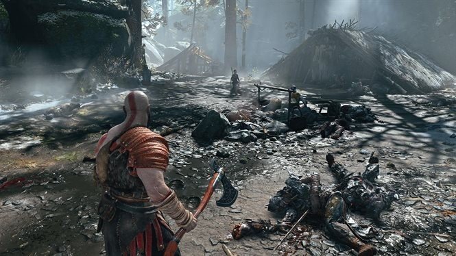 Comme ce fut le cas avec Tomb Raider, Hitman et beaucoup d'autres, God of War est centré sur la lutte intérieure de Kratos, ainsi que le désir de raconter une histoire plus profonde et tout aussi intense à travers sa quête de rédemption en tant que père. Un voyage initiatique avec son fils Atreus, suite à la mort de sa femme. Bien que cela ressemble un peu à la recette de The Last of Us, les similitudes se terminent ici, car le script est si bien fait qu'il s'écoule naturellement même entrecoupé de très nombreux affrontements avec des ogres, des trolls et d'autres créatures nordiques légendaires. Le récit est intelligent dans sa structure, oscillant entre émotion, brutalité et humour, avec un excellent dialogue jouant principalement sur les réactions innocentes et ludiques d'Atreus, contrastant avec celles plus contenues d'une bataille et d'un Kratos durci par la vie. Entre Kratos et Atreus, il y a aussi assez de place pour certains personnages secondaires, notamment le premier que vous rencontrerez, comme Brok et plus tard son frère Sindri, tous deux nains avec des personnalités opposées. Le prix du meilleur acteur de soutien ira probablement à Mimir. Figure importante dans la mythologie nordique, ce dieu de la connaissance et de la sagesse sera sauvé de la torture d'Odin par notre paire de héros, formant un trio intéressant avec une chimie parfaite. En plus de devenir le cerveau du groupe, à la fois littéralement et figurativement, Mimir donnera constamment des informations intéressantes sur le monde du jeu, et plusieurs légendes nordiques, aidant Atreus - et le joueur - à perfectionner ses connaissances.