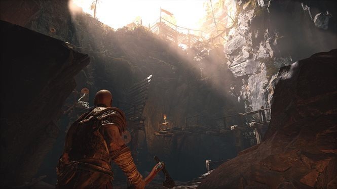 La campagne propose environ vingt cinq heures de jeux, et l'histoire contraste avec celles des autres opus parce que Kratos apprend finalement à son fils Atreus de ne pas tomber dans les mêmes erreurs qu'il a tristement commises. Pour le reste d'entre vous, si vous espérez découvrir une histoire de vengeance et de trahison entre Dieux, comme les jeux précédents, alors vous serez probablement déçu. Tandis que ceux-ci sont présents, cependant, ils ne sont pas l'élément central de l'histoire malgré le voyage de nos héros ponctués par des affrontements contre certains de ces Dieux nordiques. Si vous arrivez avec l'attente des jeux précédents, plus tôt vous réaliserez que God of War est en effet une histoire à part entière, mieux ce sera. Ce jeu de 2018 est dédié au Spartan et à son fils, sa nouvelle vie et étant plus humain que jamais, malgré sa divinité, et ce n'est pas une chose facile à accomplir. Luttant constamment contre cette rage et cette colère qui sommeillent en lui, Kratos cherche la rédemption en apprenant à Atreus à devenir un homme meilleur que jamais, cachant son passé pour un avenir meilleur. Tout a un sens et vous remarquerez comment les réactions du garçon restent crédibles, à la fois dans son élan de joie enfantine ou de colère incontrôlée, en plus de sa tendance naturelle à tenir tête à son père. Bien sur, God of War profite d'une compatibilité avec la PS4 Pro, et il s'agit sans doute d'un des titres utilisant le mieux le support. Si vous n'avez pas la console - même sans téléviseur 4K - ce jeu est une raison tout à fait viable pour améliorer votre équipement, car vous pouvez ressentir la souffrance de la PS4 normale avec le son du ventilateur très intense. Bien qu'il n'y ait pas de dommages visuels sur l'écran en termes de performance, le jeu est visuellement meilleur sur la PlayStation 4 Pro. Dans les deux cas, le jeu fonctionne à une vitesse de 30 fps, sauf si vous activez le mode performance et que vous augmentez le nombre de framerate entre 40 et 60, en fonction de ce qui se passe sur l'écran. Ce n'est pas tant le passage du 1080p au 2160p qui bouscule GOW, mais plutôt le HDR qui transforme vraiment ce jeu en une toile numérique colorée, pleine de détails nets et de textures riches. Malheureusement, la bande-son n'a pas reçu les mêmes égards, avec des musiques moins épiques qu'auparavant. Ne vous méprenez pas, l'aspect sonore ce n'est pas mauvais, mais il n'est peut-être pas aussi puissant que dans les premiers titres.