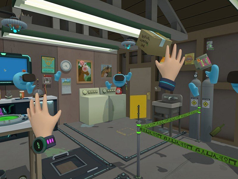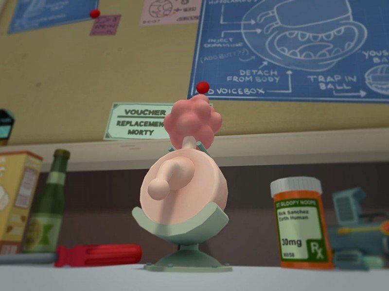 Développé par Owlchemy Labs (Job Simulator), Rick and Morty : Virtual Rick-Ality est un jeu uniquement jouable au PlayStation VR. Il faut noter que le jeu est intégralement en anglais et qu'il n'y aucun sous-titre des dialogues, ce qui pourra perturber plus d'un joueur. La série Rick & Morty, débuté fin 2013 sur Cartoon Network, est pourtant diffusée sur France 4 dans la langue de Molière, sans doute les développeurs ont estimé que le titre s'adressait à un public trop niche sur le Vieux Continent. Bref, Rick Sanchez est un scientifique qui ressemble beaucoup physiquement au Doc de Retour vers le Futur (la série Rick et Morty a d'ailleurs été inspirée d'une parodie reposant sur la célèbre trilogie) mais avec un caractère encore plus instable et surtout un cynisme fou. Beaucoup de ses expériences se terminent par une catastrophe, mais il n'en est que faire et il est un criminel avéré sur beaucoup de planètes. Morty Smith, 14 ans, est quant à lui le petit-fils de Rick, et le personnage que vous dirigerez dans cette production VR. Cet adolescent timide est souvent ridiculisé par son grand-père et est perçu comme un peu simple d'esprit au début de la série, mais il se révèle finalement une grande aide pour Rick dans ses aventures.