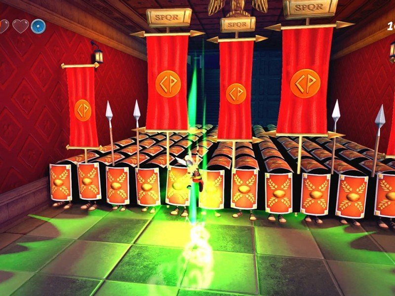 Cependant pour diversifier les actions, les développeurs ont intégré quelques énigmes et surtout de nombreuses parodies. La première venait du packaging du jeu qui reprenait la charte graphique de la jaquette de GTA San Andreas, mais pour cette nouvelle édition, l'illustration de couverture a été entièrement refaite. Plus subtilement, nombre de légionnaires sont inspirés d'icônes du jeu vidéo. Outre le faux Mario et son jetpack, le personnage avec un bouclier Pac-Man, on distingue également des références à Sonic, Sam Fisher ou encore Lara Croft. Jules César n'hésite pas à donner de sa personne, en imitant l'agent Smith (de Matrix). Des références qui trahissent parfois l'âge du jeu, une partie de l'humour tombe à plat si vous ne connaissez pas les productions parodiées (et Super Mario Sunshine remonte tout de même à 2002).