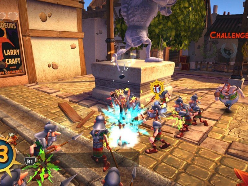 Techniquement XXL 2 proposait un rendu graphique tout à fait honorable en 2005, avec un rendu haut en couleurs et des textures très fines. Treize ans plus tard, les graphismes ont forcément beaucoup vieillies, à commencer par les cinématiques reprises telles quelles ! La modélisation des deux Gaulois demeure assez agréable et les couleurs chaudes utilisées donnent un certain charme à l'aventure. N'oublions pas non plus de mentionner les petites mimiques des personnages très sympathiques dans ce Las Vegas Romain. L'animation est proposée à 30fps et on constate encore quelques ralentissements, que ce soit sur PS4 ou PS4 Pro. PS4 oblige, il est bien sur possible de jouer sur PS Vita via la fonctionnalité Remote Play. La jouabilité est de son côté extrêmement accessible, seule une caméra parfois défaillante pourra entacher la progression (un défaut déjà présent en 2005). Jeu Français oblige, les dialogues sont dans la langue de Molière et s'en sortent très bien idem pour les bruitages. Les musiques sont un peu plus discrètes quand à elles.