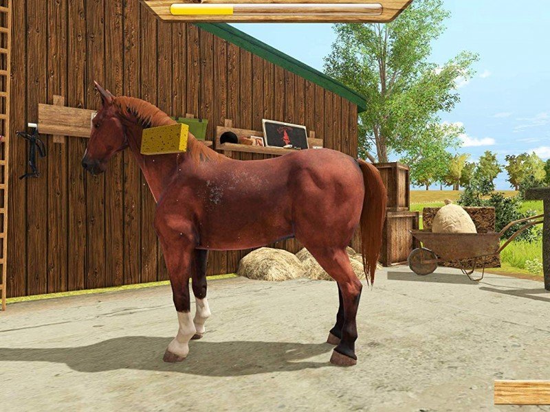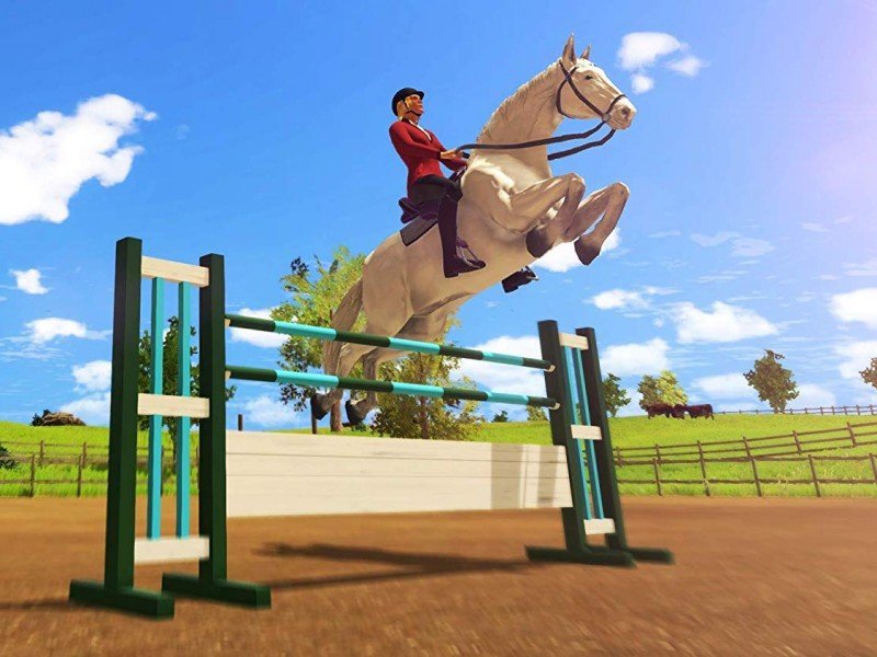 Développé par le studio Caipirinha Games, My Little Riding Champion vous place à la tête d'un club d'équitation que vous avez récemment hérité. Votre aïeul avait un beau cheval blanc, mais il s'est échappé. Heureusement, le cheval a laissé des traces super visibles au sol, et au cas où vous ne parviendrez pas à les distinguer du reste des textures, il y a des points de contrôle rougeoyants à une distance de cinq mètres au-dessus d'elles. À la fin de ce tutoriel, vous découvrirez un étalon qui se tient immobile devant vous comme s'il vous attendait depuis des années. De retour aux écuries, vous constaterez du personnel qui ressemble à ces jeux de simulateur très populaire sur PC et qui se déplace également de la même manière - presque pas du tout. Quoi qu'il en soit, les trois habitants de la région ne font que rester enracinés dans le décor, on a connu plus joyeux comme premières impressions. Pour gagner de l'argent, vous devrez participer à des tournois avec votre cheval. Les salles réservées sont toujours un peu effrayantes, car tout le monde applaudit ou achète, même si votre canasson et vous même êtes les seuls dans tout le bâtiment. Dans le tournoi, il vous faudra sauter par dessus des poteaux colorés qui ressemblent à des cannes de bonbon. Le parcours court est constitué de plusieurs obstacles et objectifs à franchir dans l’ordre et malheur à vous si le cheval touche une de ses cannes pendant le saut. Vous aurez alors cinq secondes de pénalité par poteau et devrez tout recommencer ! Bien qu'un tel tournoi ne prenne qu'une demi-minute, la frustration apparaît rapidement.
